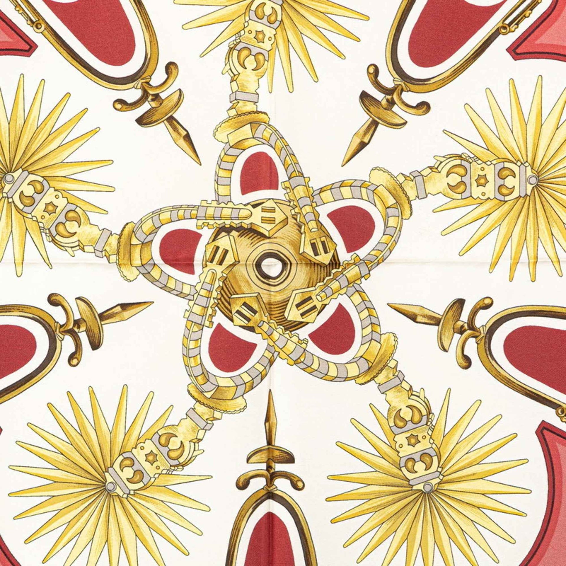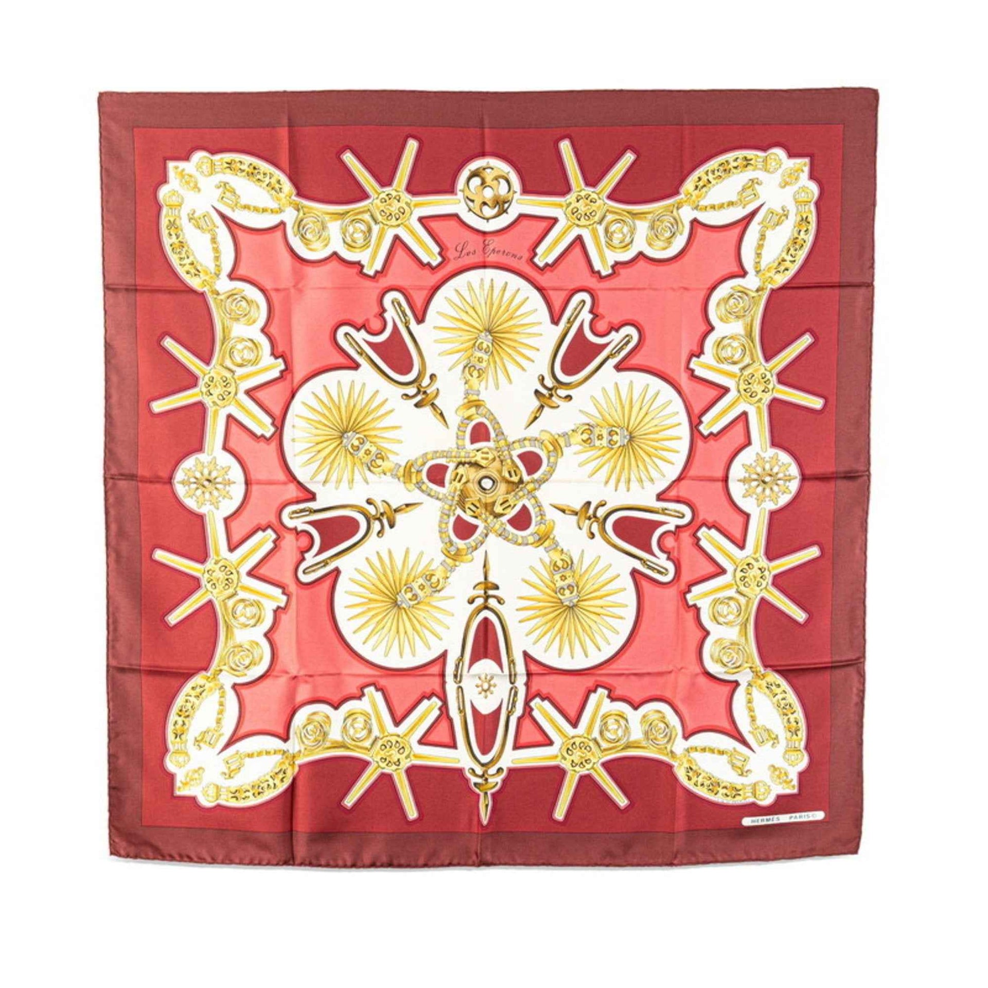Hermes Hermès Carré 90 Les Eperons Scarf, Wine Red and Gold Silk, Women\'s