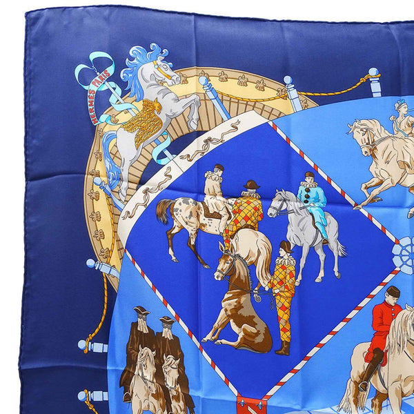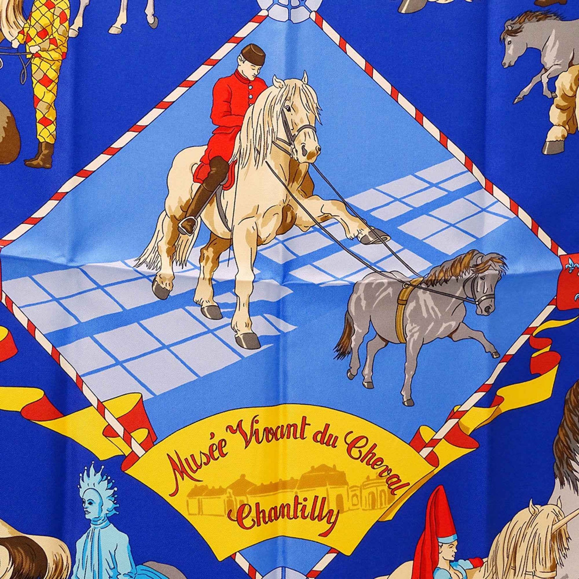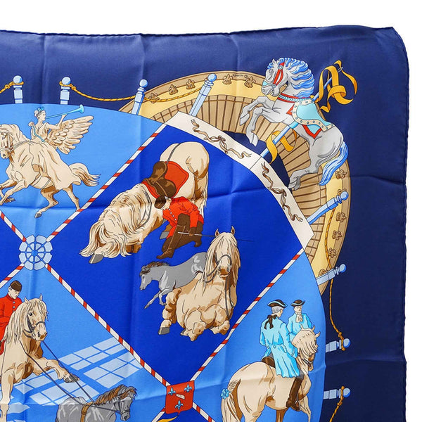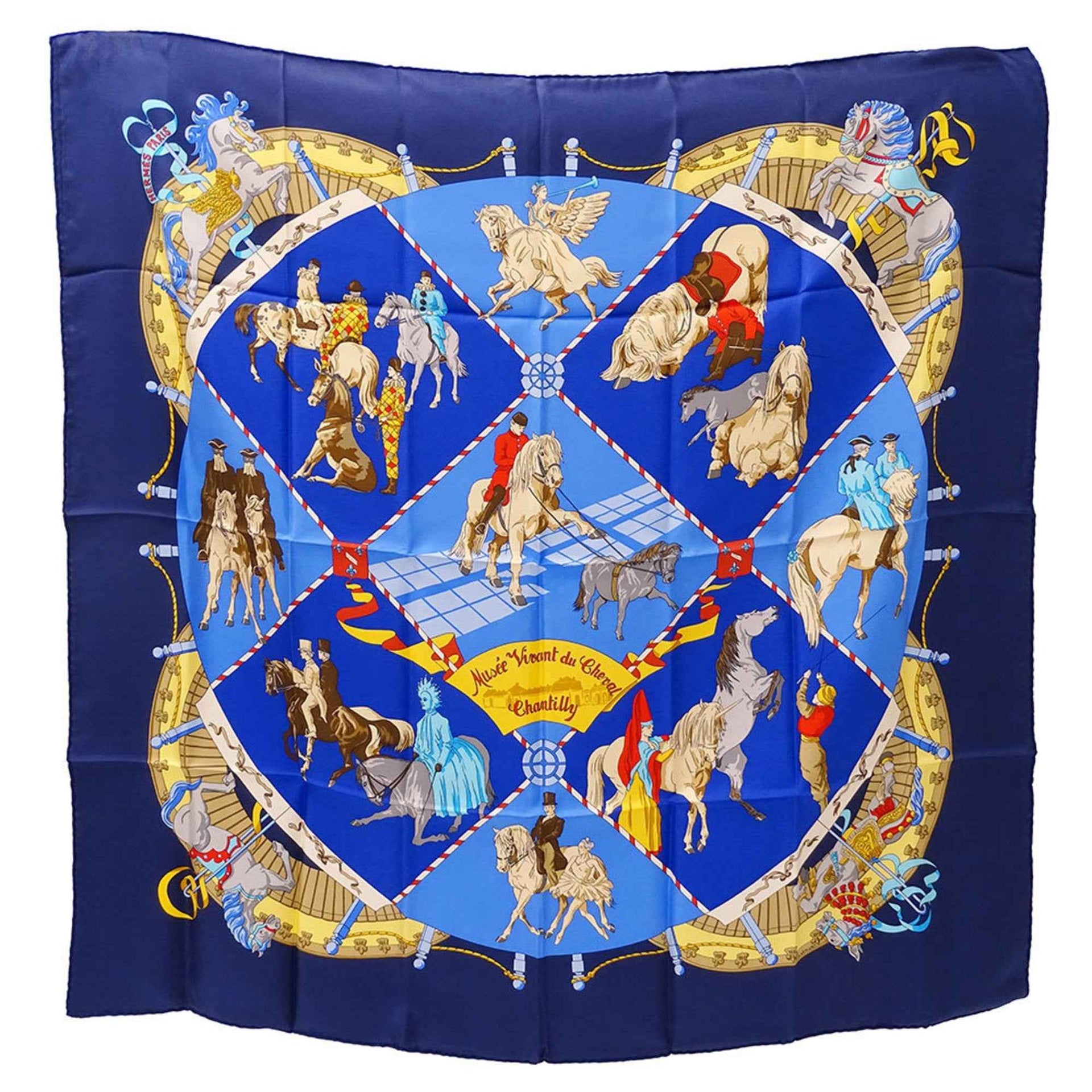 Hermes Hermès Carré 90 Scarf, Musee Vivant du Cheval Chantilly, the Horse Museum of Women\'s, Silk, Blue, Large, Horse-Shaped
