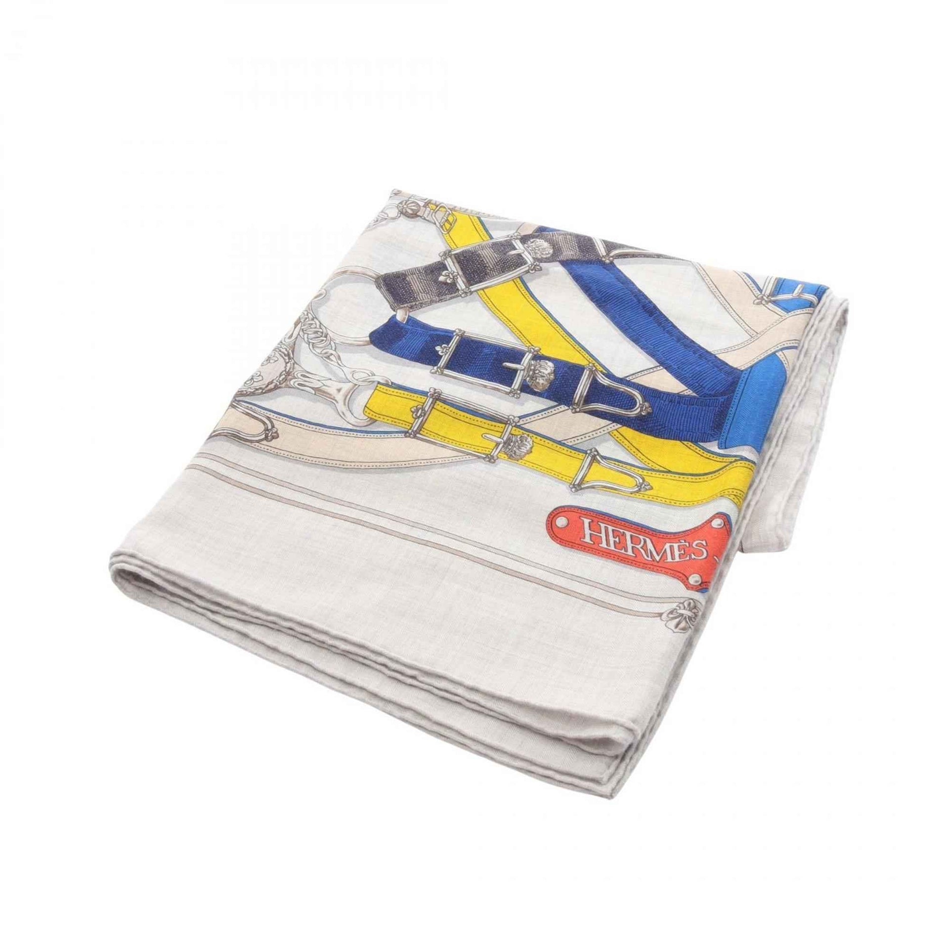 Hermes Hermès Carre Jean 140 CAVALCADOUR Scarf, Silk, Cashmere, Women\'s, Gray, Multicolor, H241698S