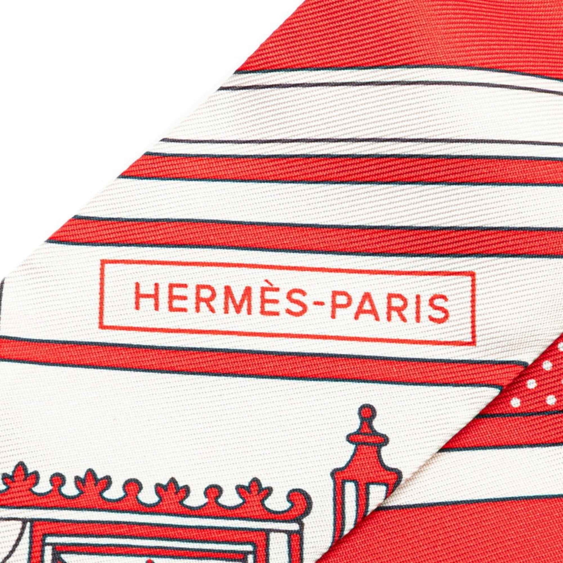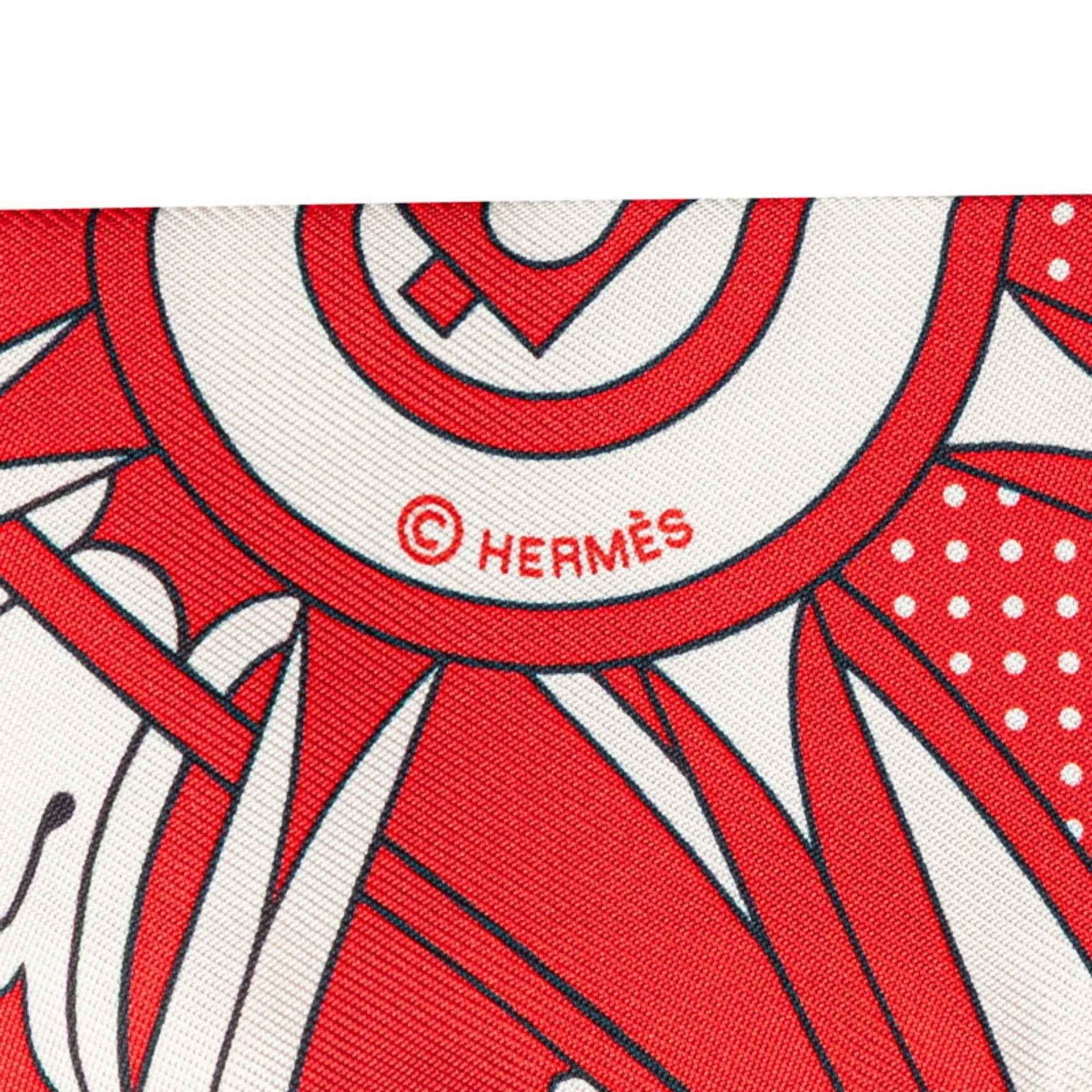 Hermes Hermès Twilly WASHINGTON\'S CARRIAGE George Washington Carriage Scarf, Red and White Silk, Women\'s
