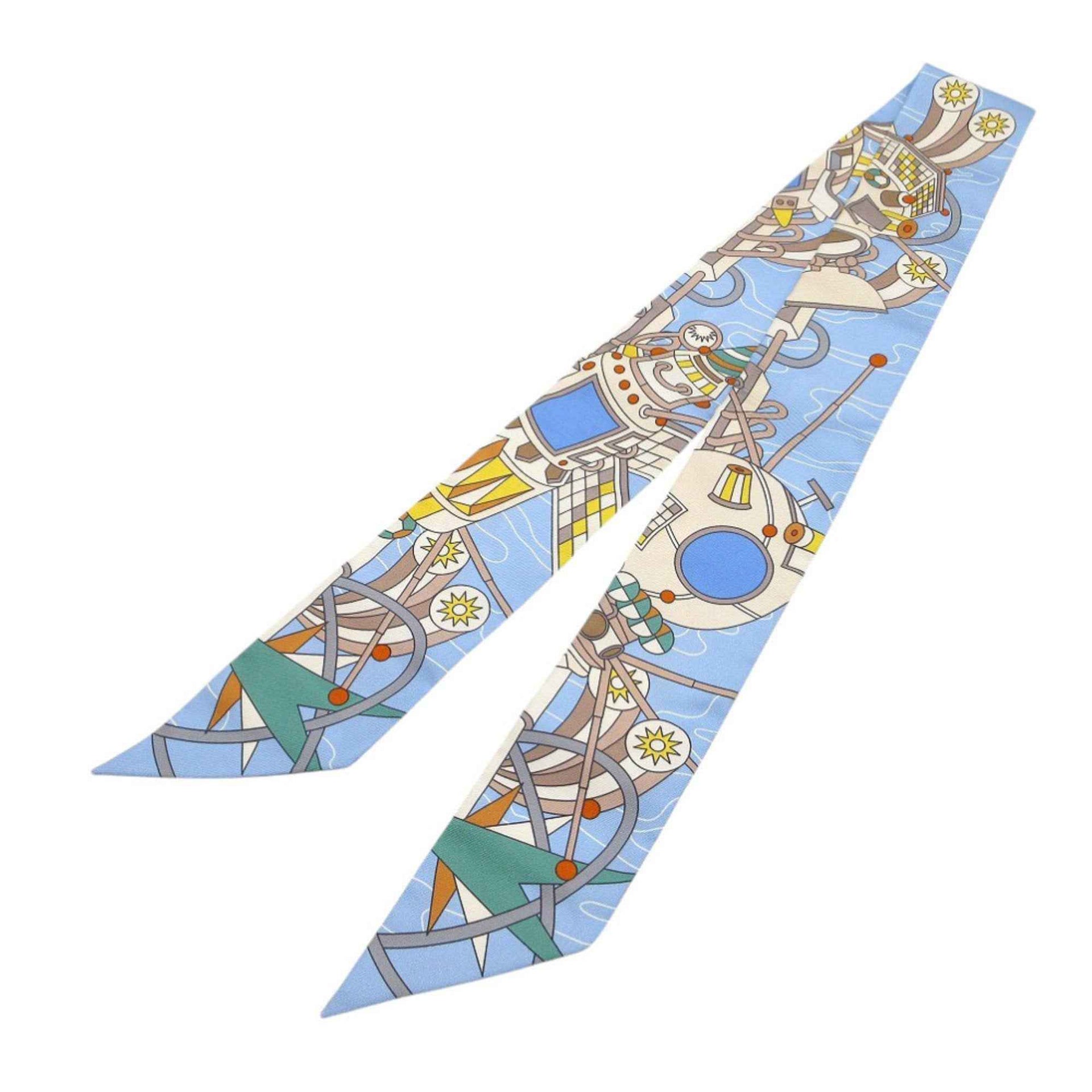Hermes Like new Hermès Twilly Odyssey Scarf/Muffler in Silk, Beige/Blue Ciel/Jaune Vif, 0175.