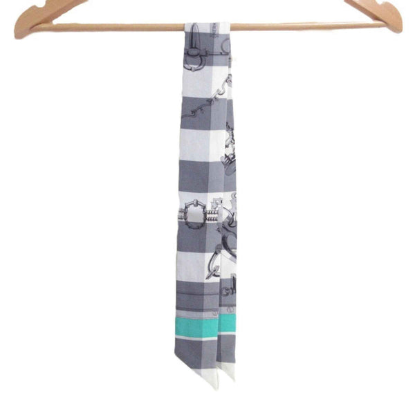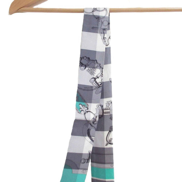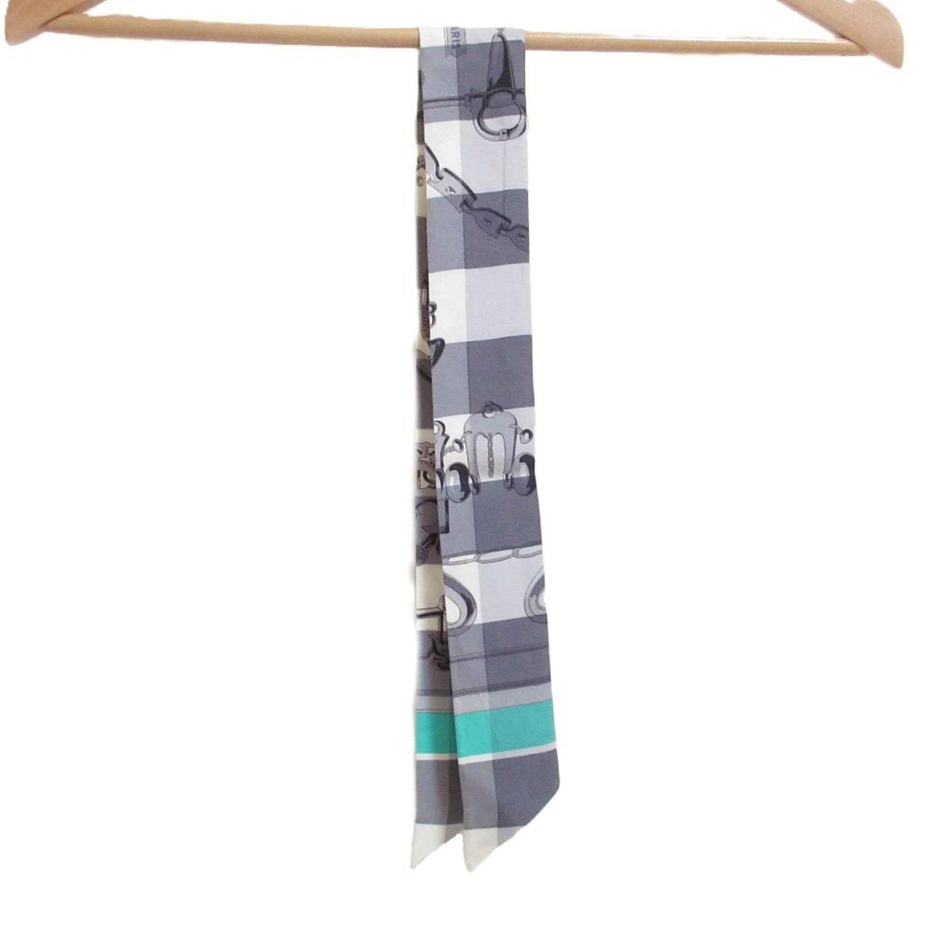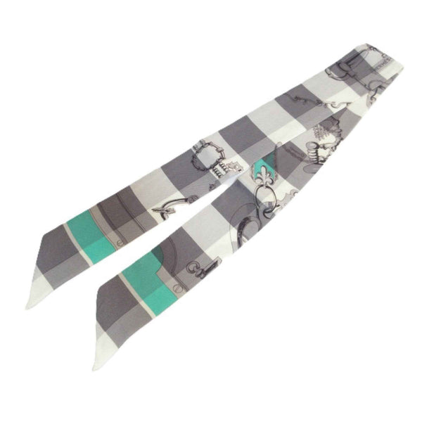 HERMES Mors et Gourmettes Bit and Chain Twilly Scarf/Muffler, Green/Gray, Women\'s