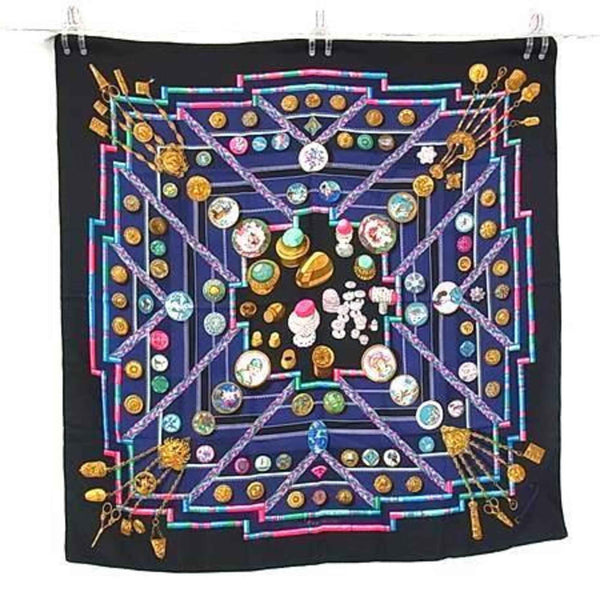 HERMES Petite Main Seamstress Scarf, Carré 90 - Black/Multicolor, 100% Silk, Women\'s