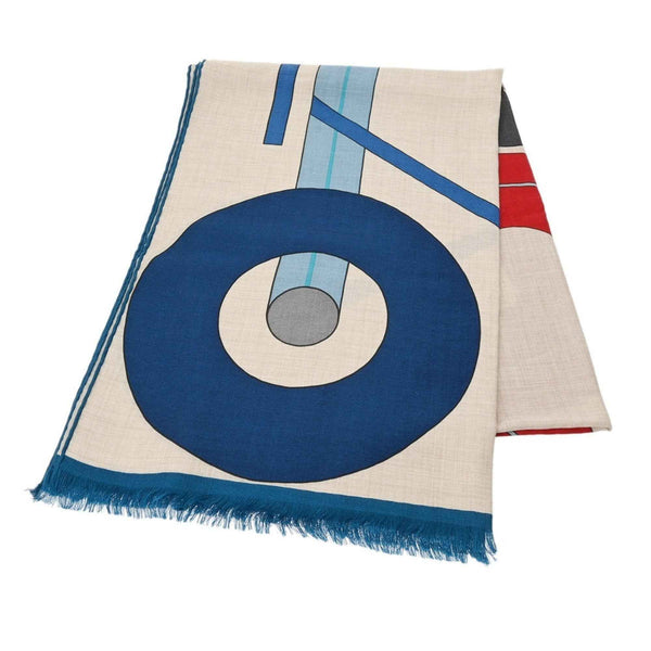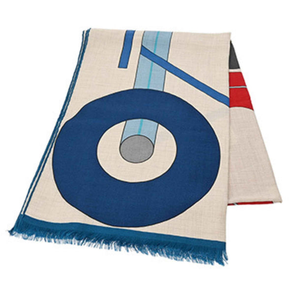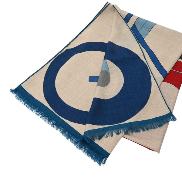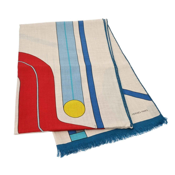 HERMES Rectangle TOP DEPART Men\'s Scarf, Natural/Rouge/Blue, 70% Cashmere, 30% Silk, Unused