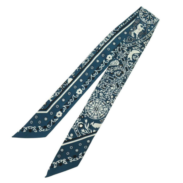 Hermès Twilly \"Peuple du Vent\" Silk Scarf, Blue, 1290HERMES