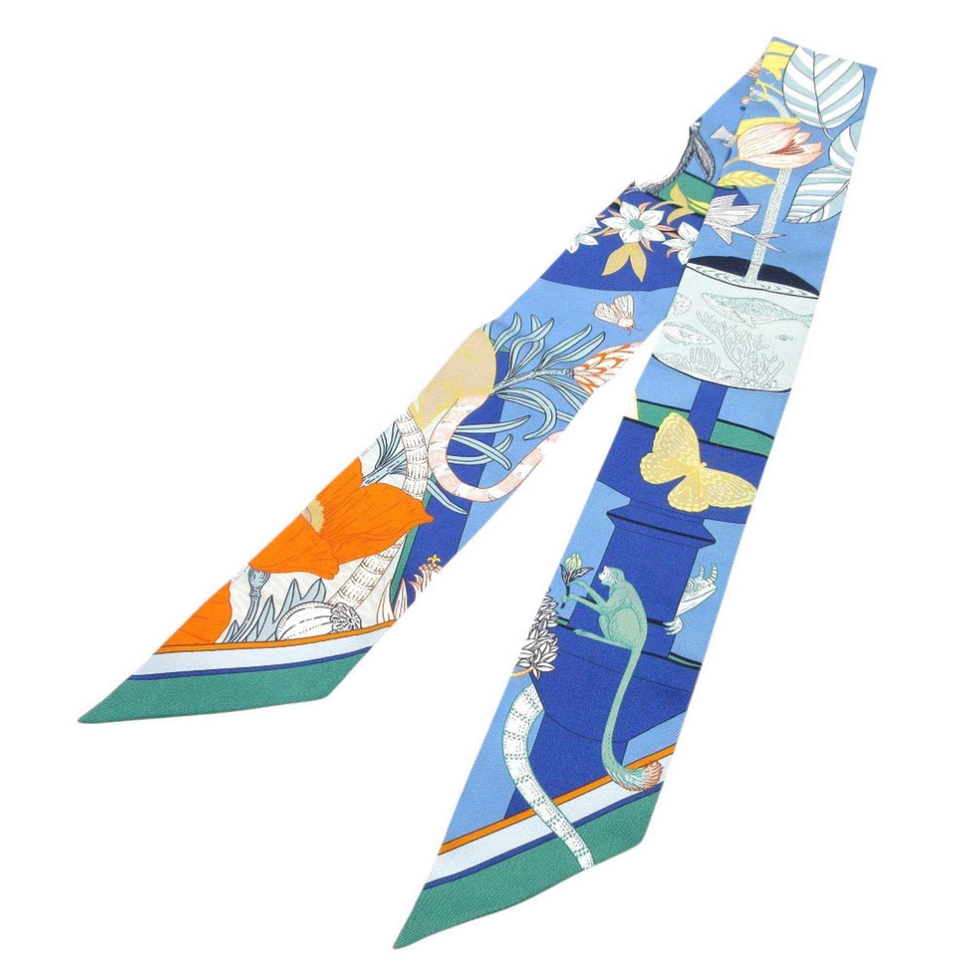 Like new Hermès Twilly Precious Paradise Scarf/Muffler Silk Blue Jean/Orange/Vert 0174 HERMES