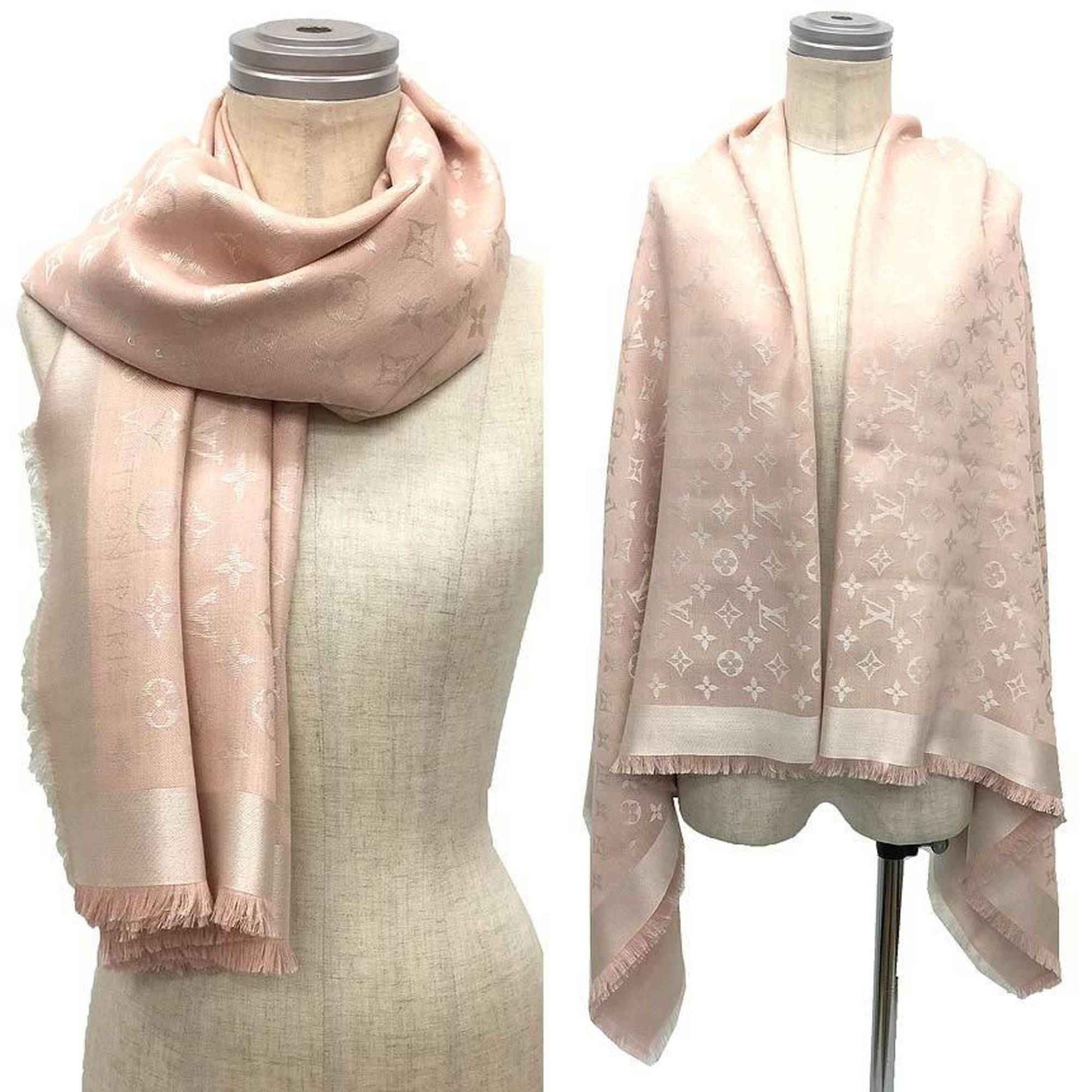 Louis Vuitton Monogram Pink Shawl M72046 Large Silk and Wool Scarf 12003