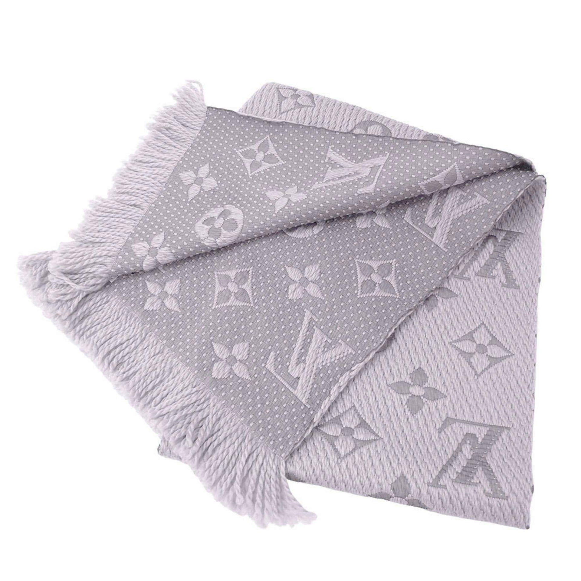 Louis Vuitton Women\'s Monogram Wool Scarf, Echarpe Logomania, Gris Perle, Gray, M74742, Autumn/Winter, Cold Weather Protection