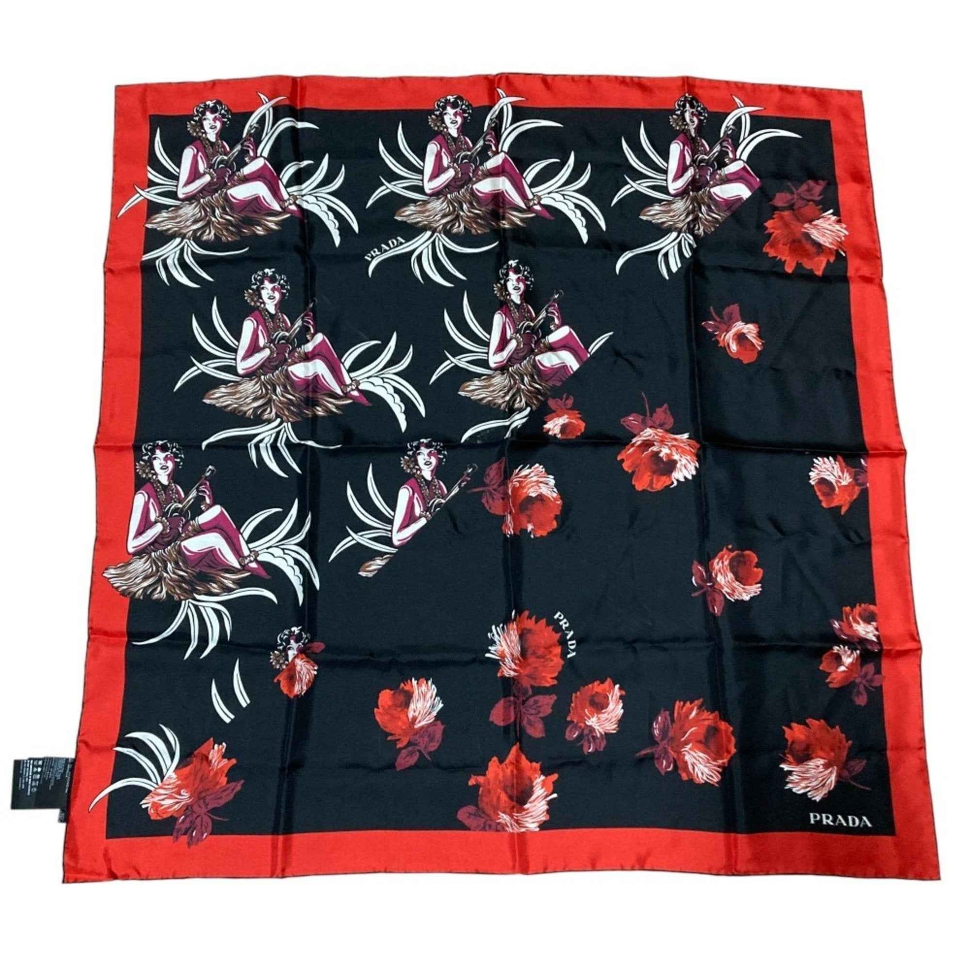 PRADA Aloha Print Large Silk Scarf/Muffler in Black for Women