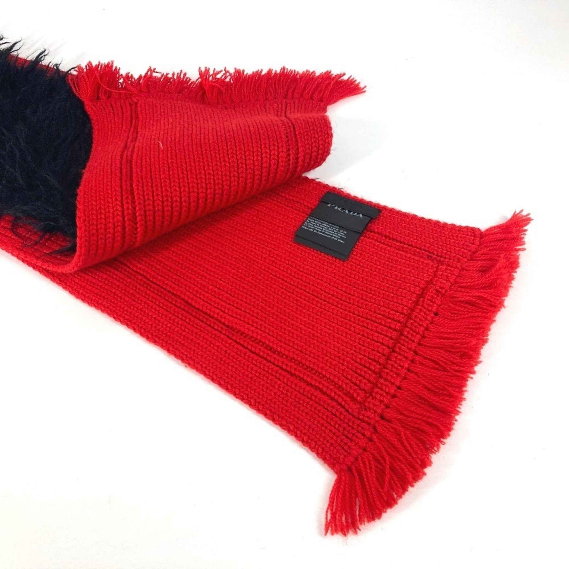 PRADA Prada Bicolor Fur Scarf Wool Cotton Men\'s Women\'s Black