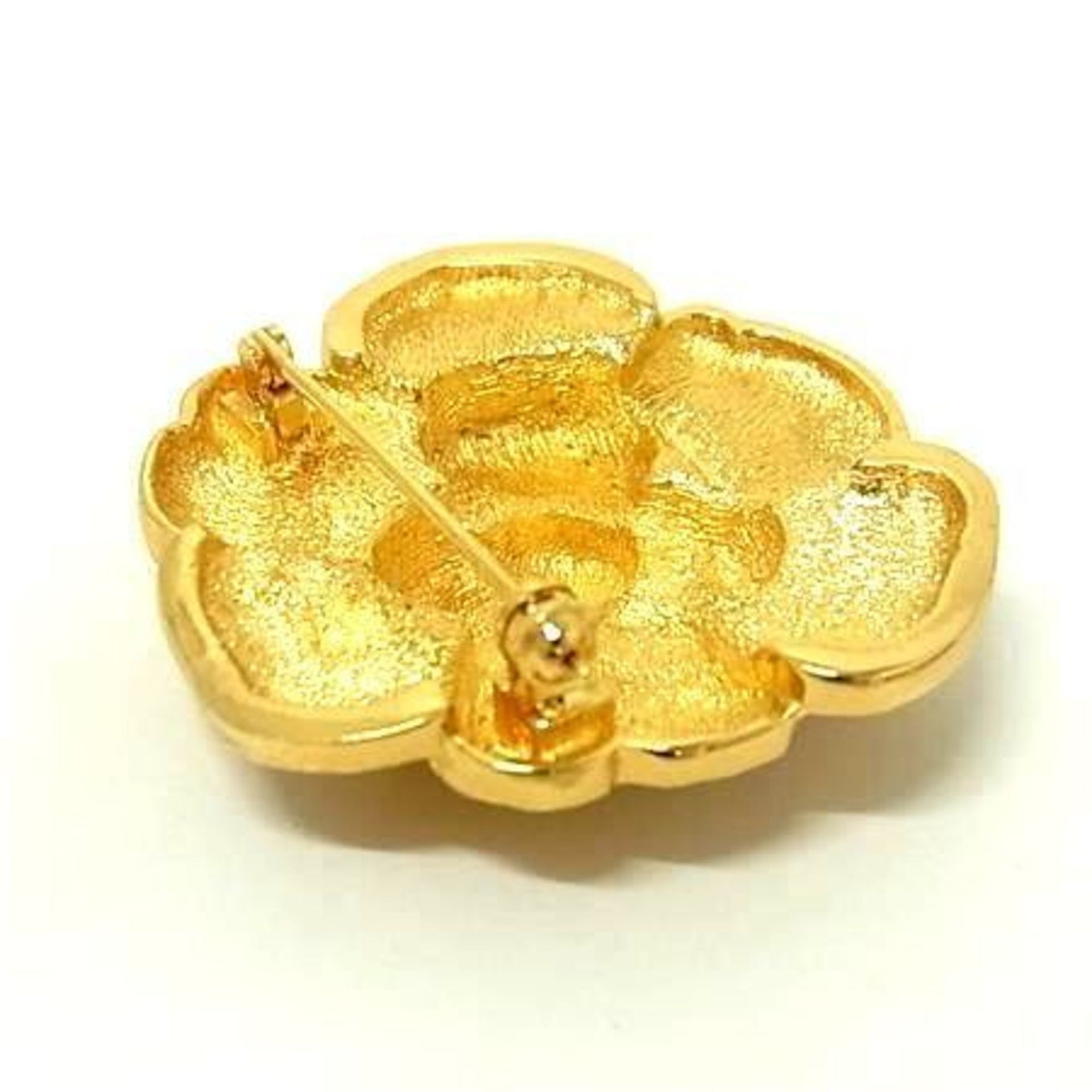 Christian Dior Brooch Pin - Gold Metal Rhinestone Flower Motif for Women