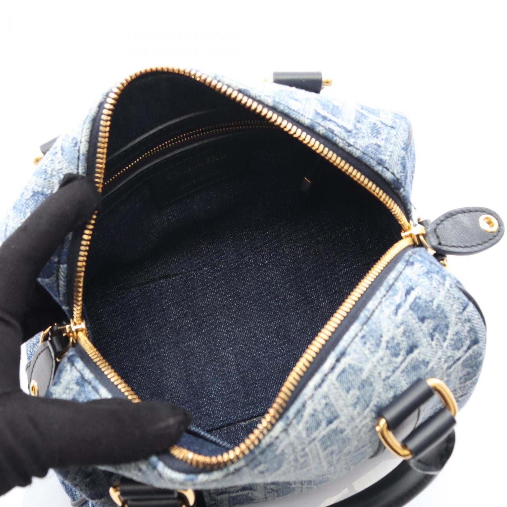 Christian Dior Dior Groove 20 Small Oblique Jacquard Handbag in Denim and Leather, Navy Blue, M1364UDCE_M49E