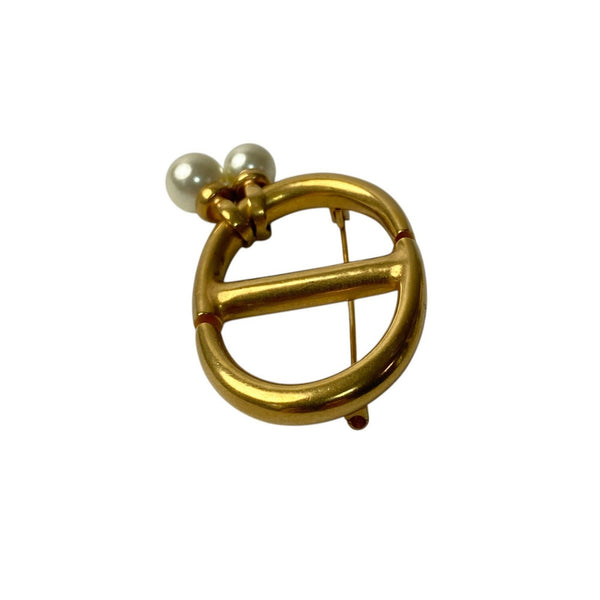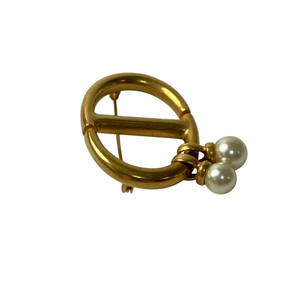 Christian Dior Dior Women\'s CD Logo Brooch with Faux Pearls