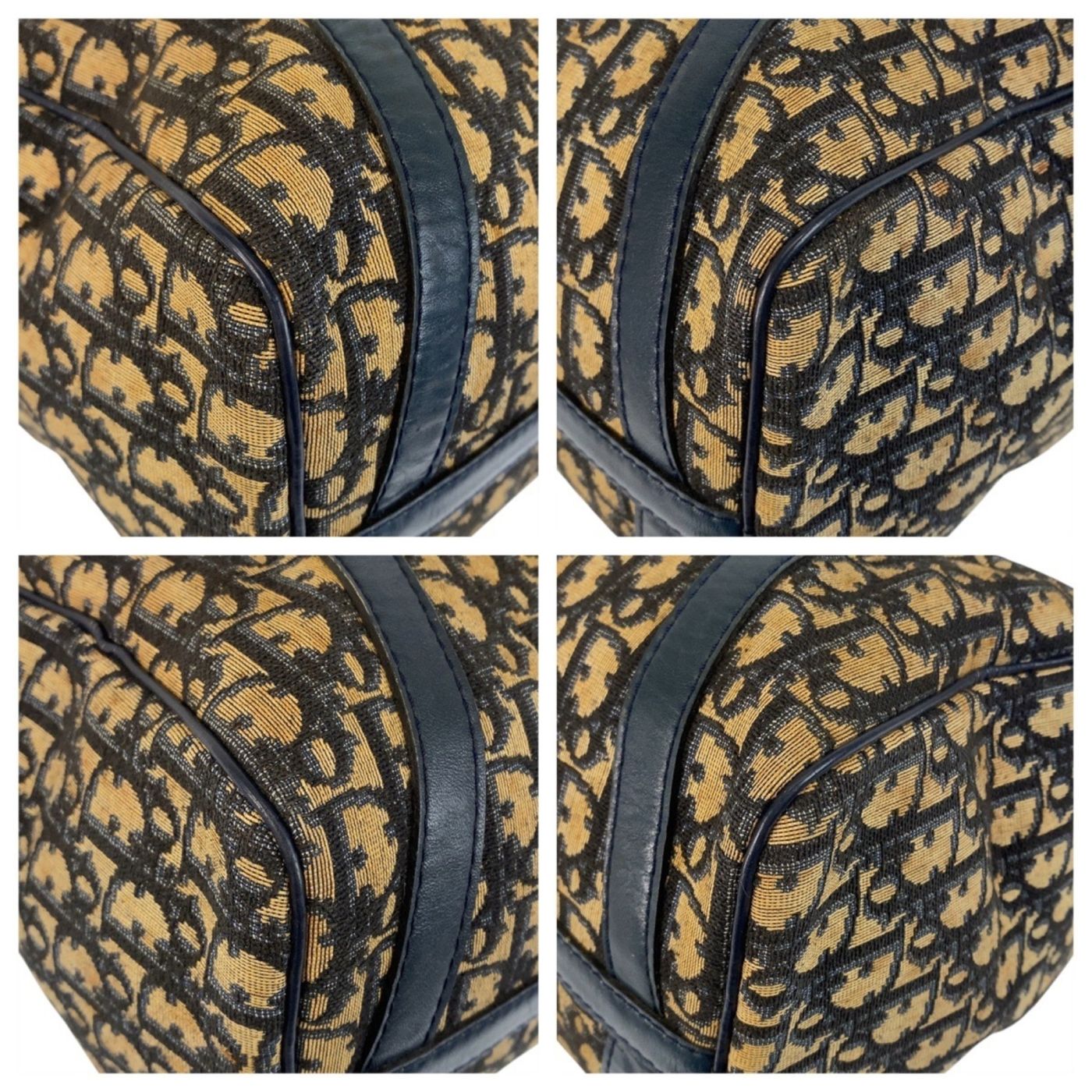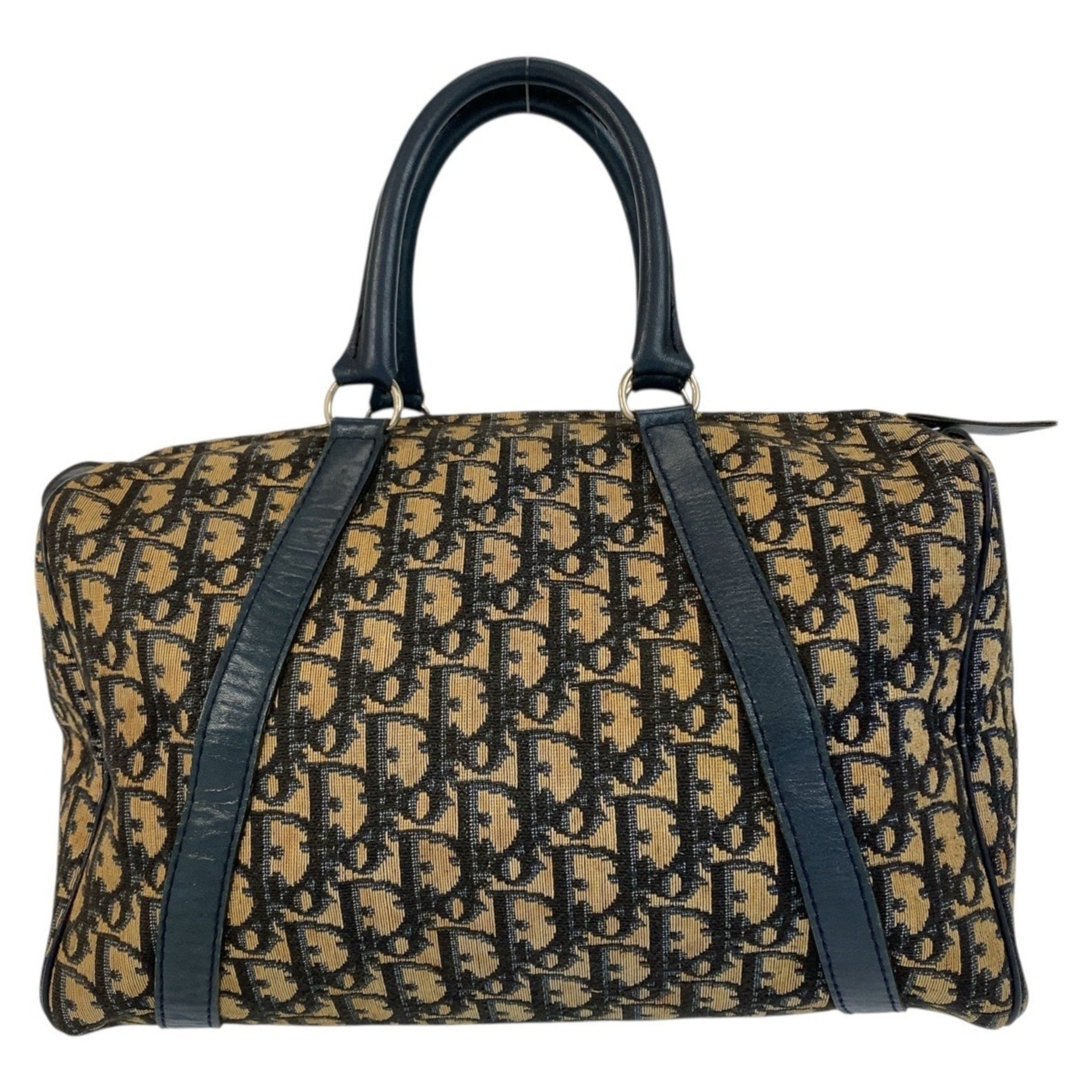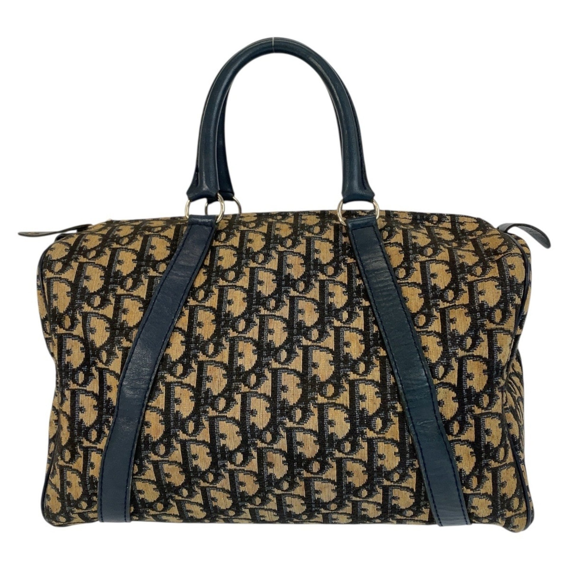 Christian Dior Trotter navy/beige canvas/leather handbag/Boston bag for women with silver hardware