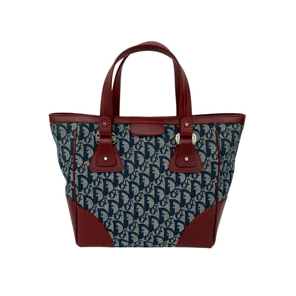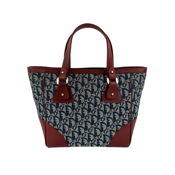 Christian Dior Trotter Pattern Canvas and Leather Handbag/Tote Bag, Navy Bordeaux, 94775