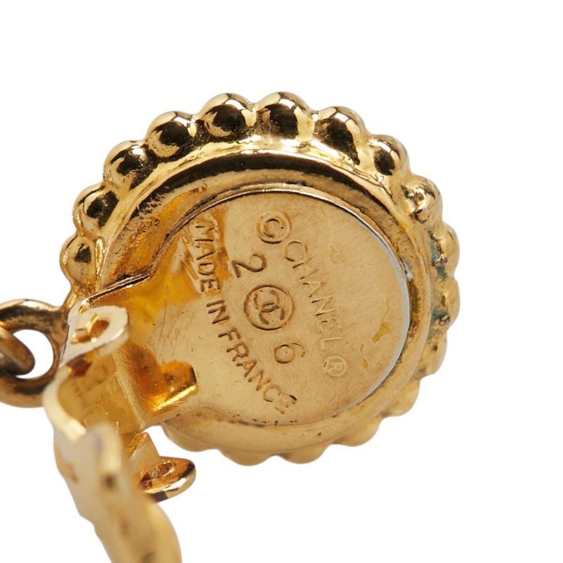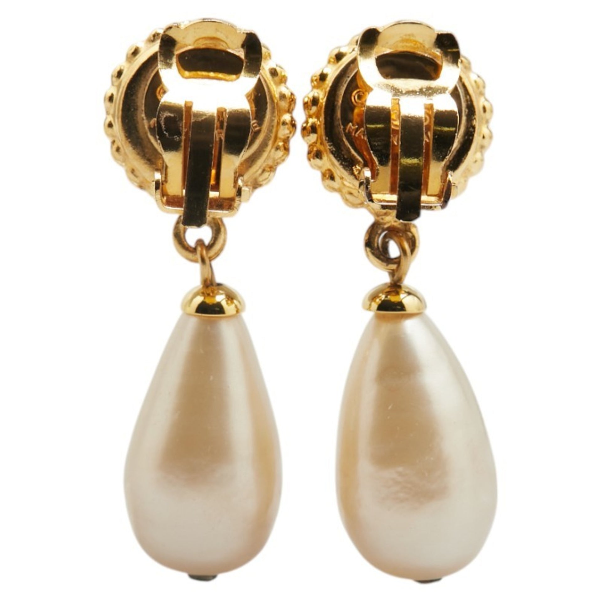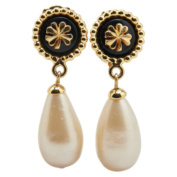 Chanel Clover Four-leaf Motif Teardrop Swing Earrings Gold Black Plated Faux Pearl Women\'s CHANEL