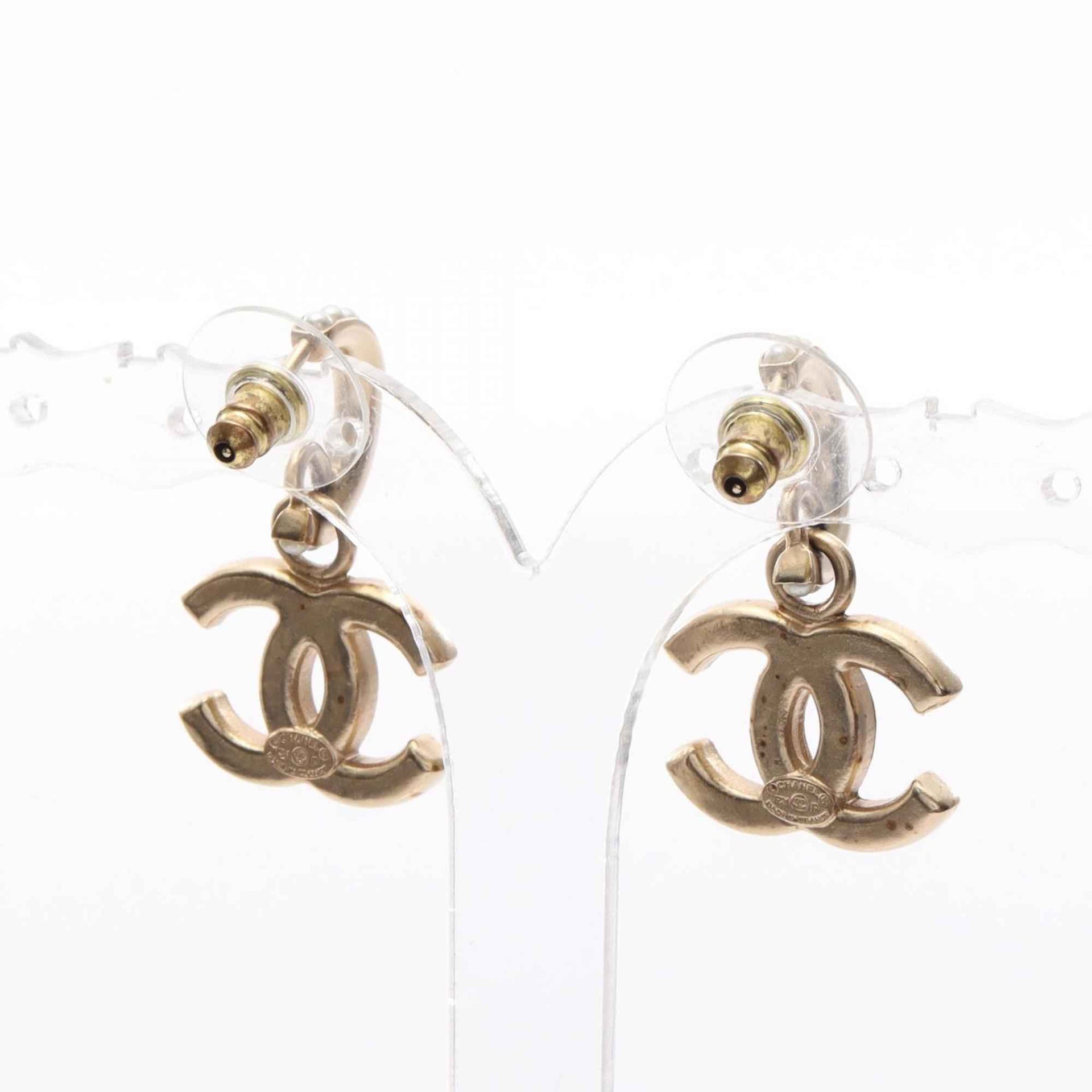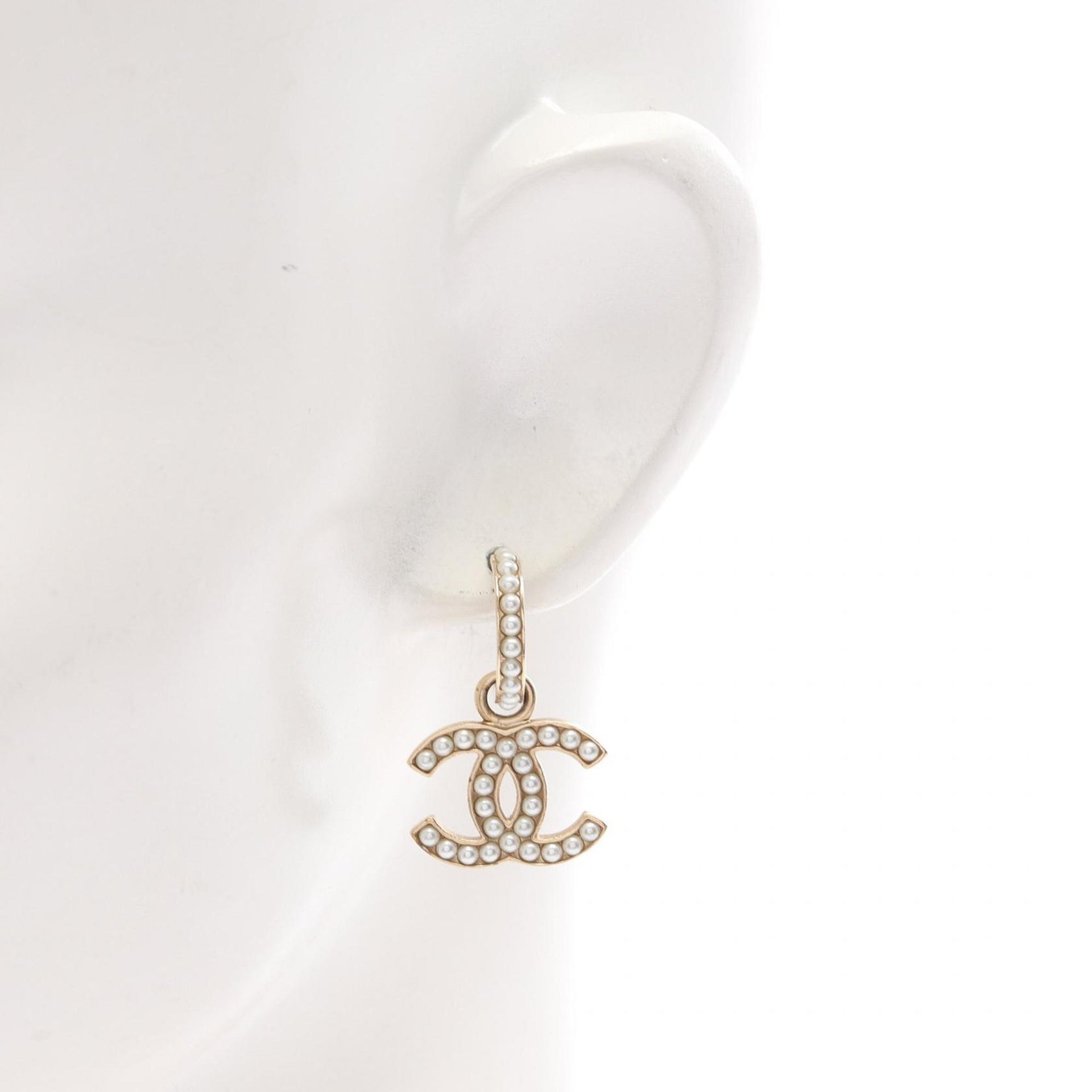 CHANEL Coco Mark Earrings, Gold Plated with Faux Pearls, Women\'s, and White