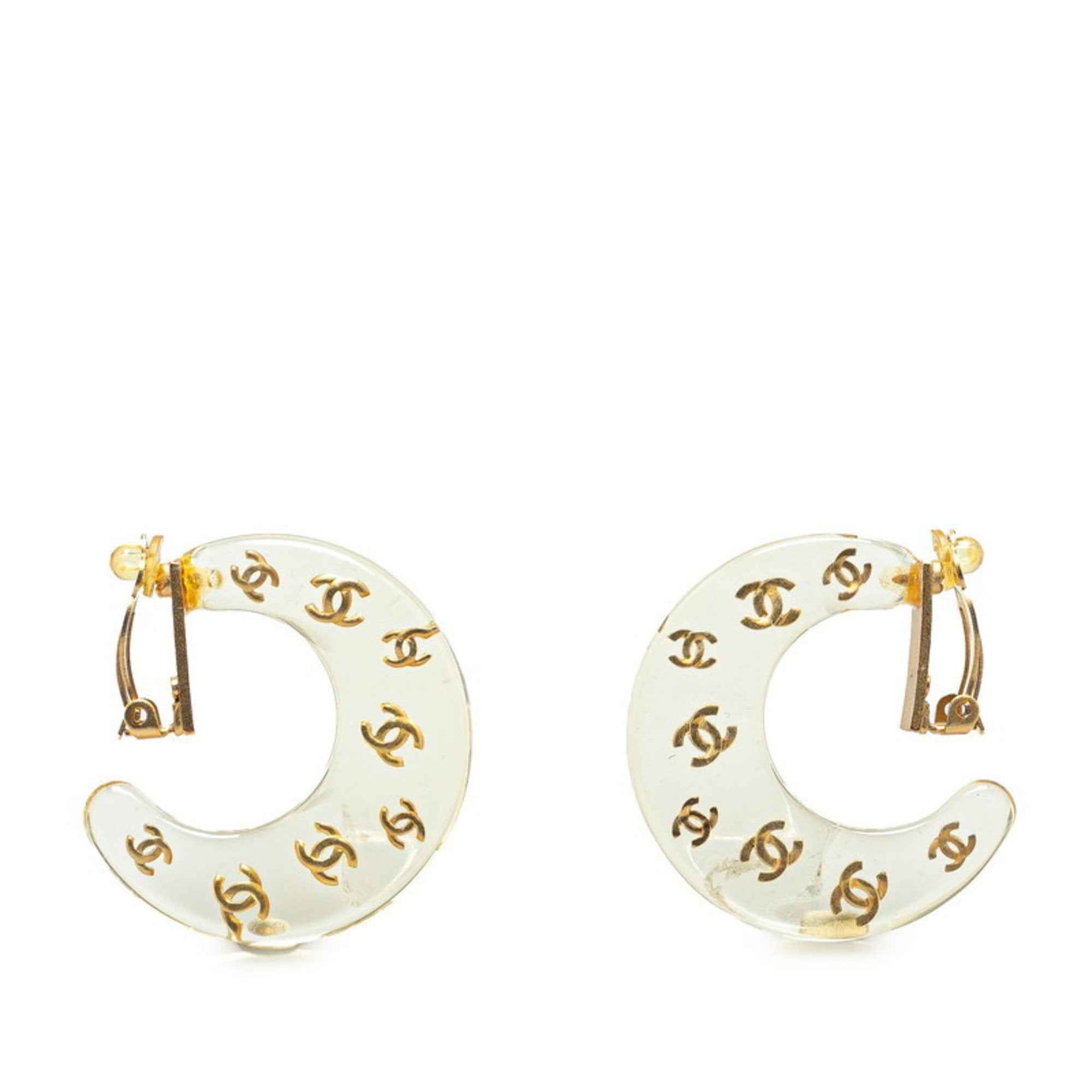 Chanel Coco Mark Hoop Earrings, Gold with Clear Plated, Women\'s, CHANEL