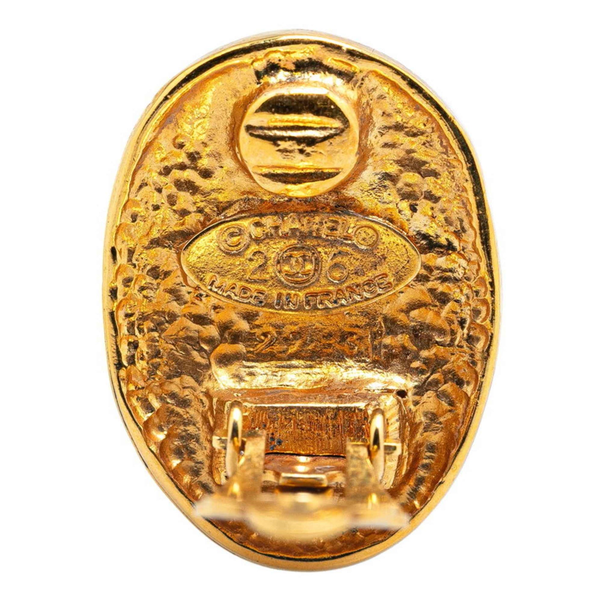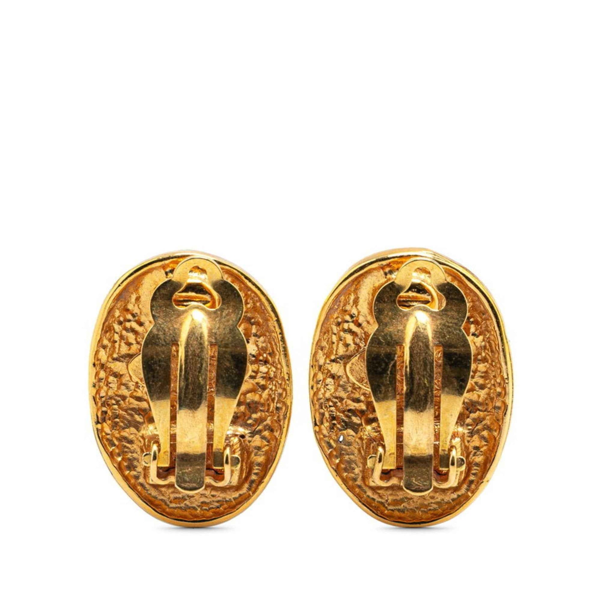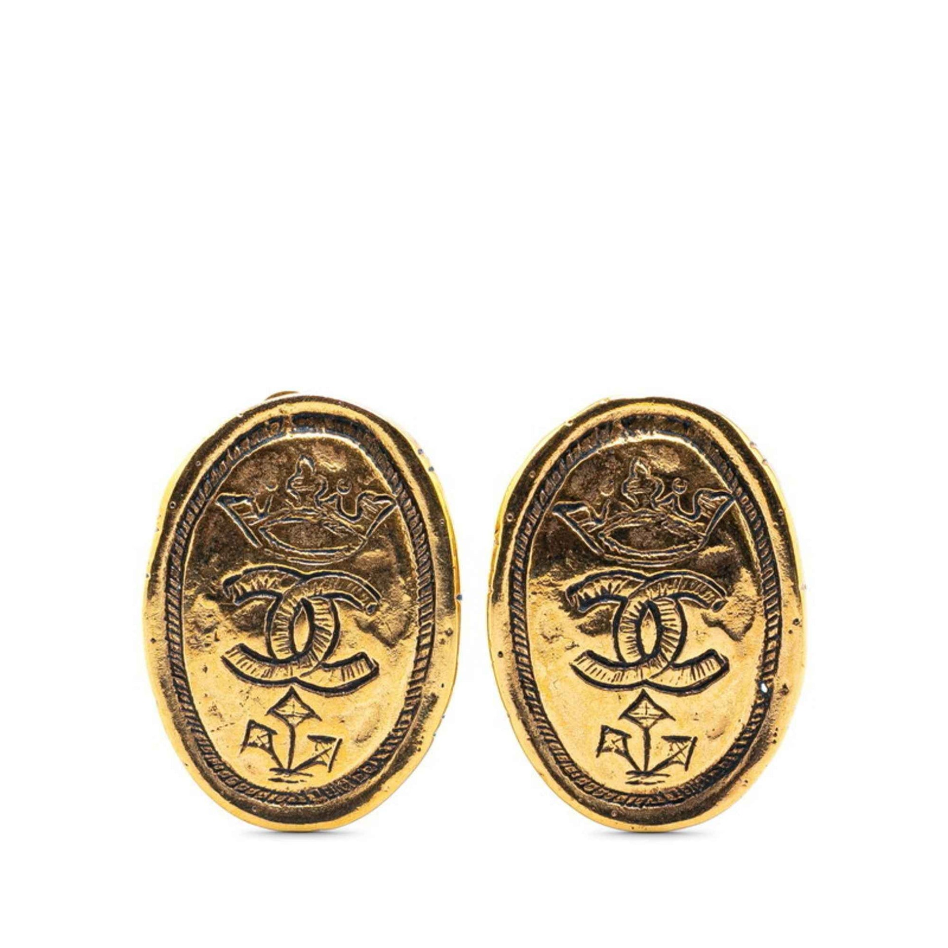 Chanel Coco Mark Oval Crown Earrings Gold Plated Women\'s CHANEL