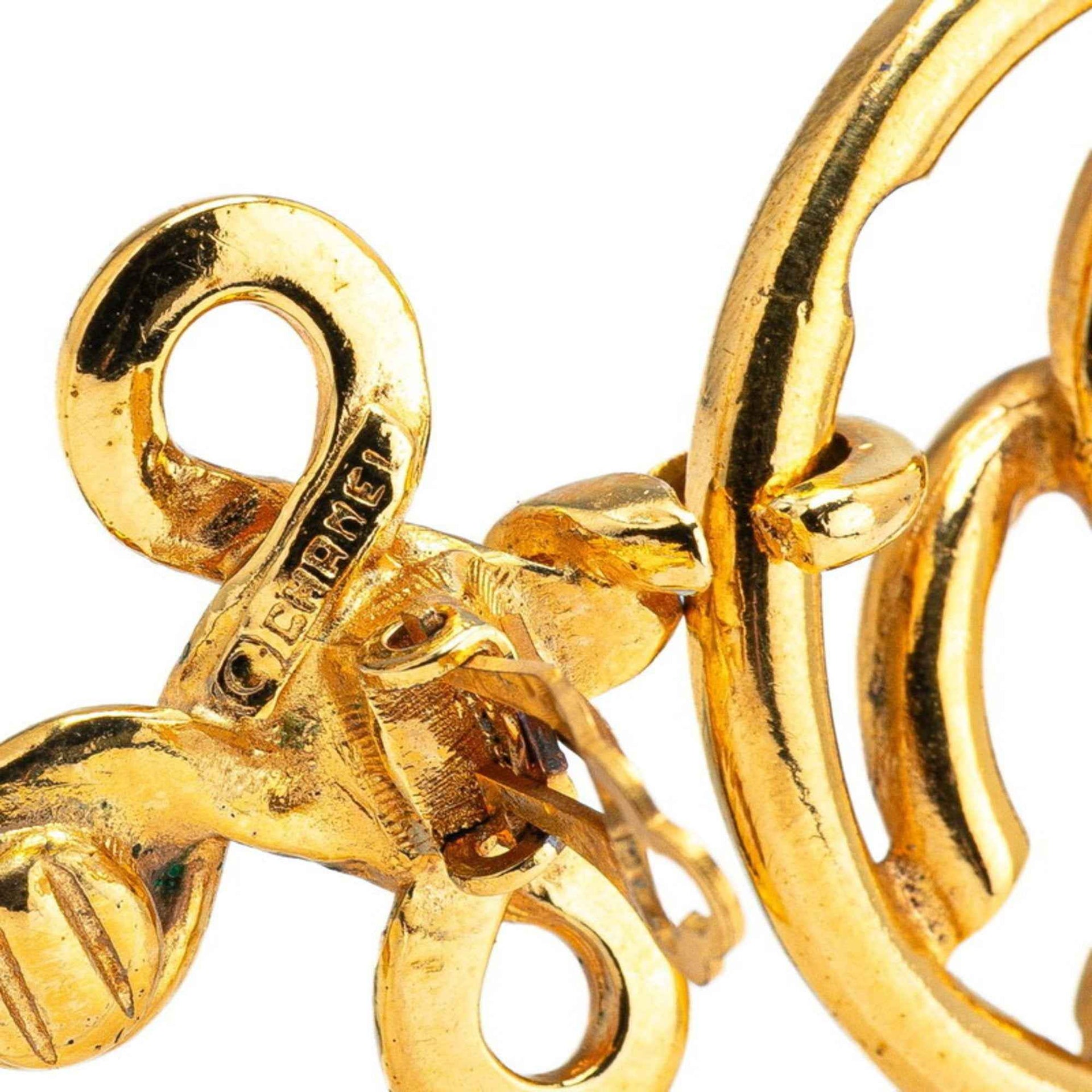 CHANEL Coco Mark Round Circle Swing Earrings, Gold Plated, Women\'s
