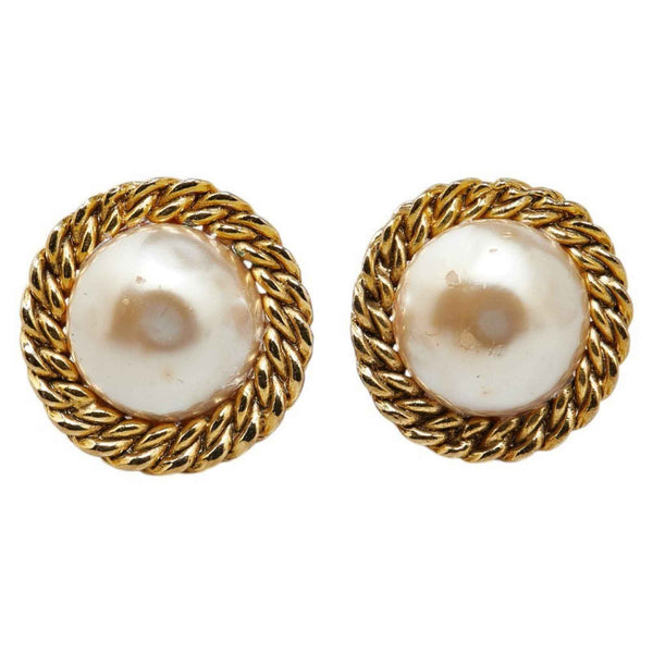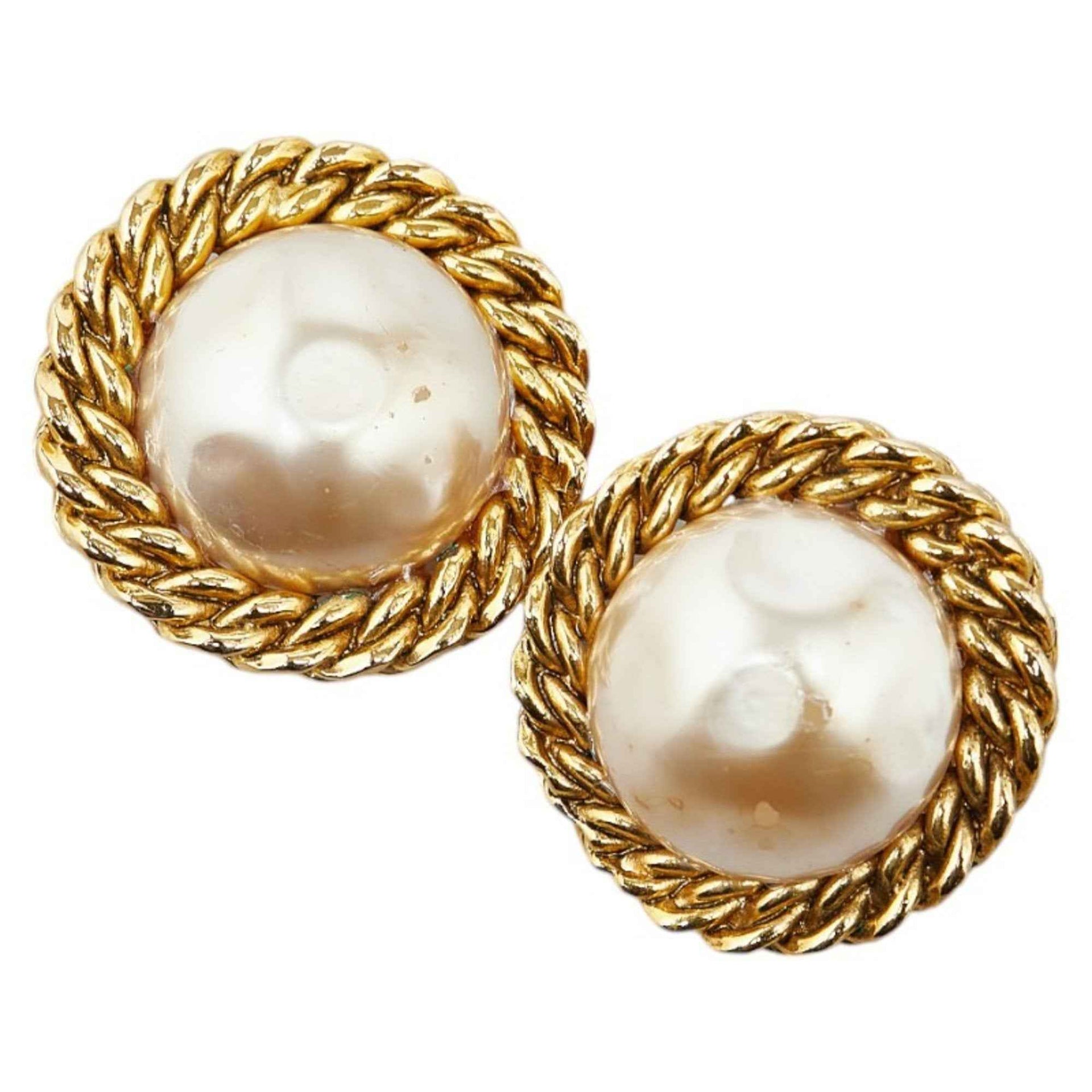 Chanel Earrings Gold White Plated Pearl Women\'s CHANEL