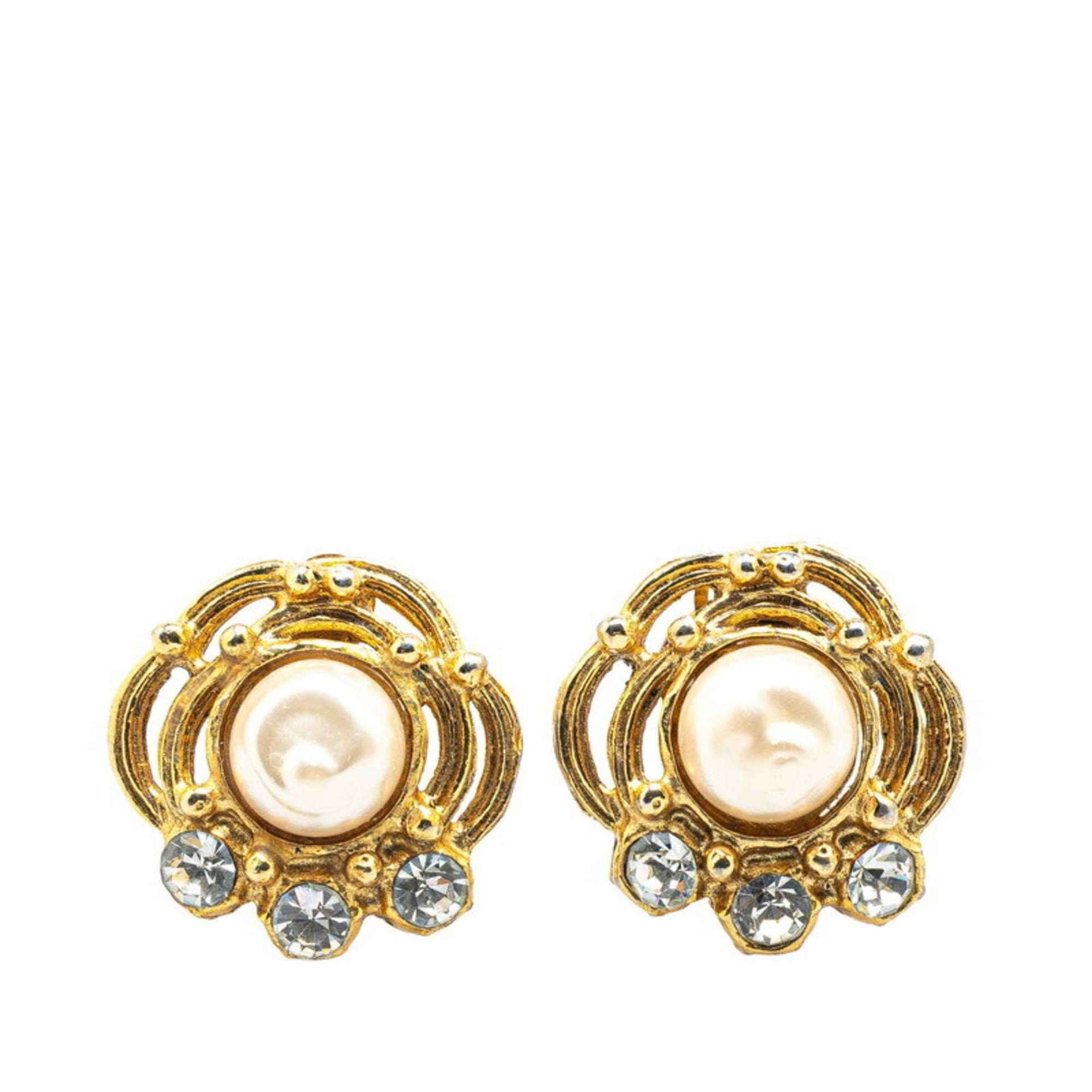 Chanel faux pearl jeweled earrings, gold plated, for women.