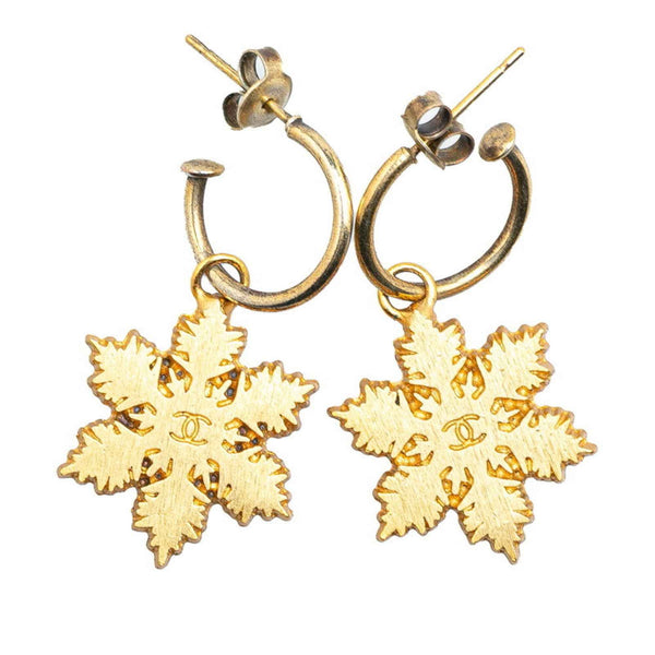 CHANEL Snowflake Earrings, Gold Plated, Women\'s