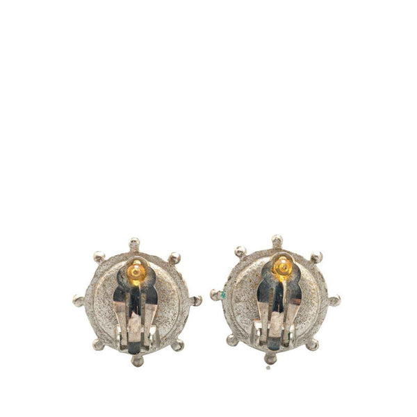 CHANEL steering wheel motif rhinestone Coco mark earrings in silver metal for women