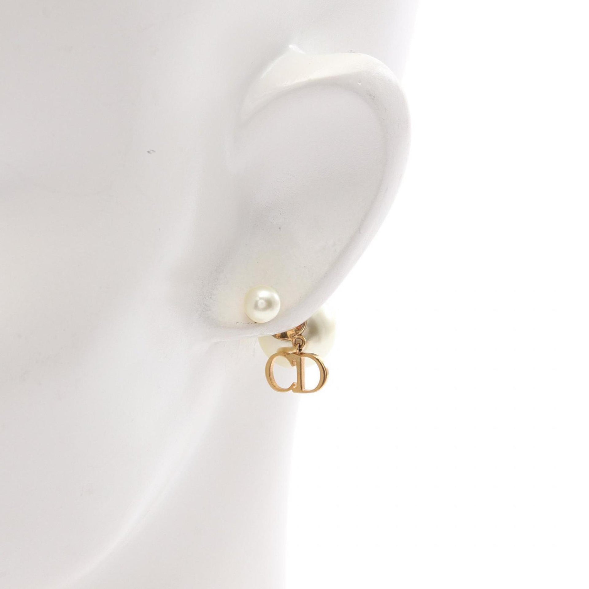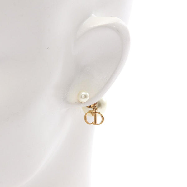 Christian Dior Dior Tribal CD Logo Earrings, Gold Plated with Faux Pearls, Women\'s, and White