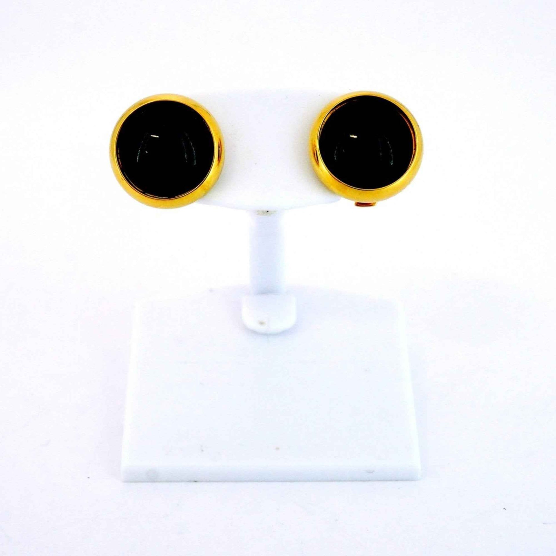 Hermes Eclipse Circle Earrings in GP Plated Gold and Black for Women