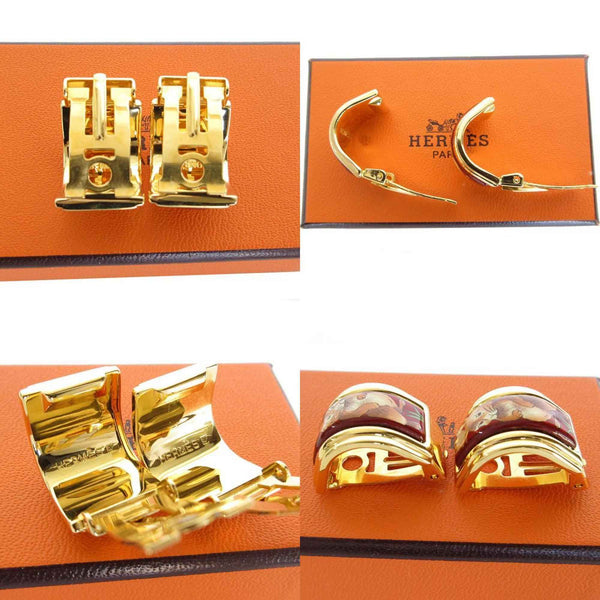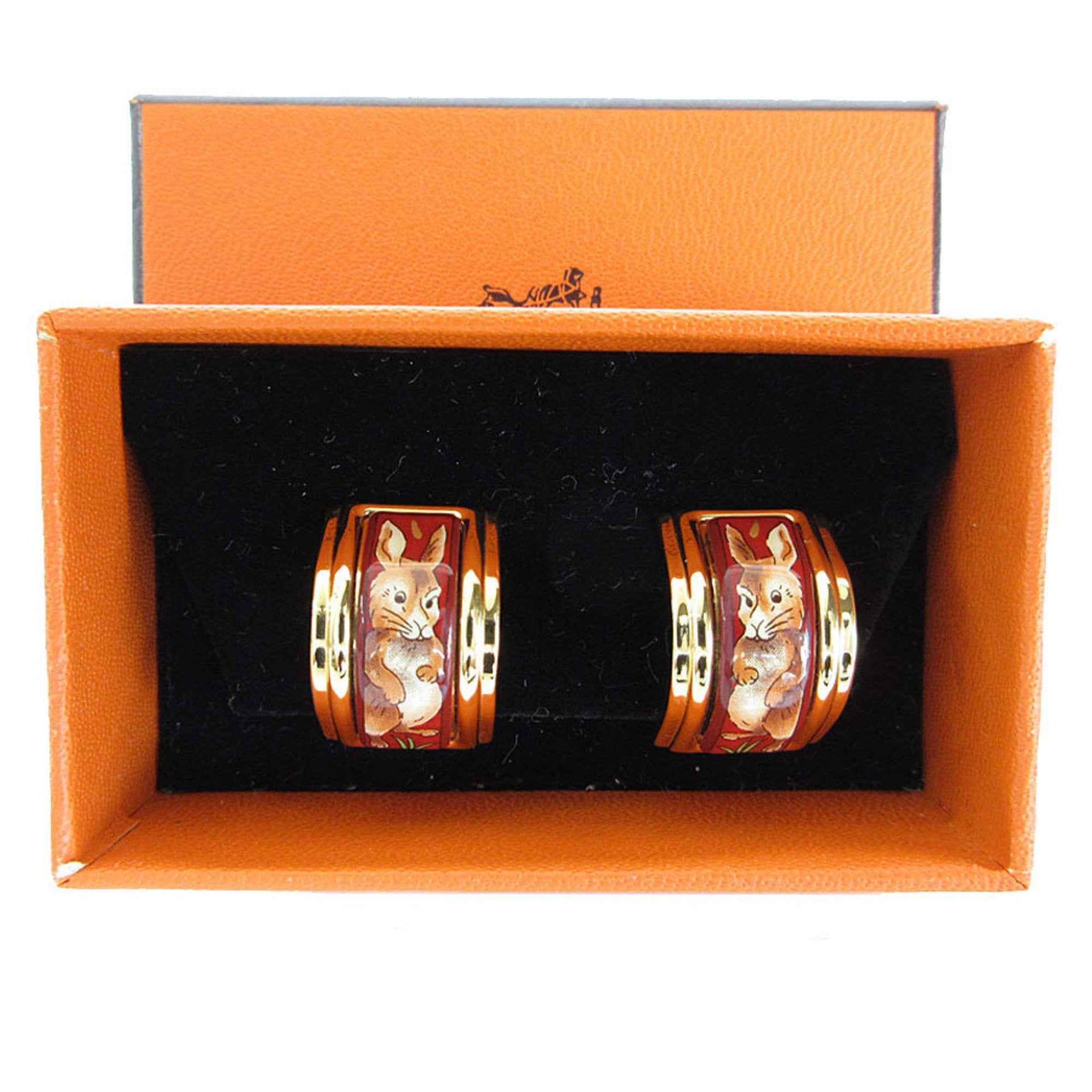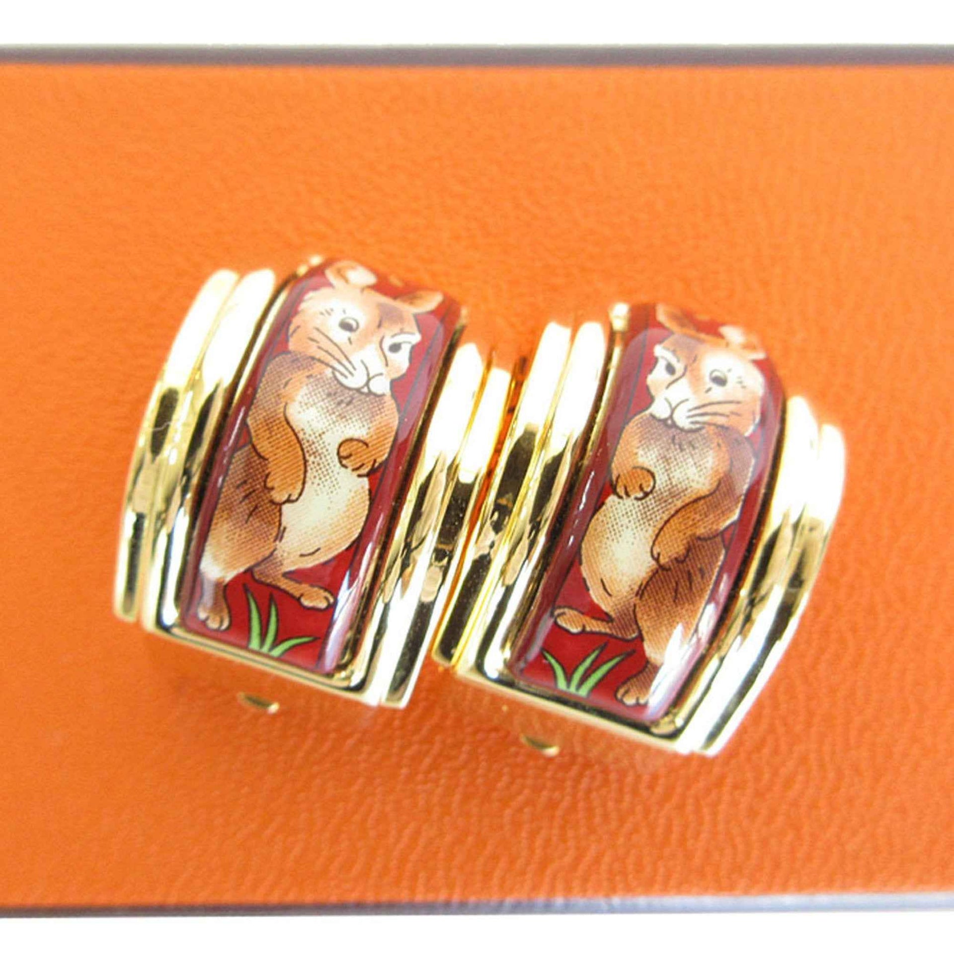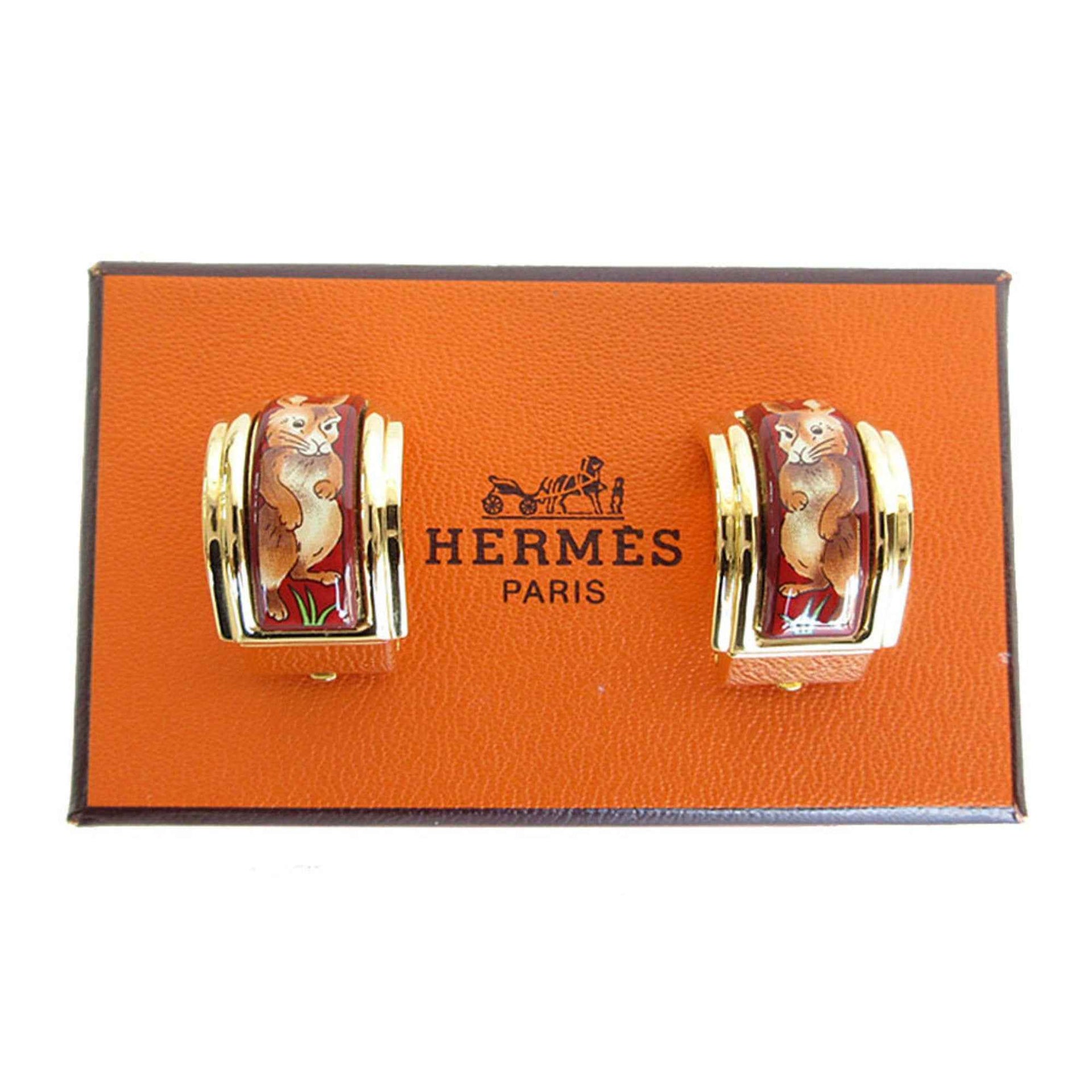 Hermès HERMES cloisonné metal earrings in gold, red, and brown, women\'s, s0683a