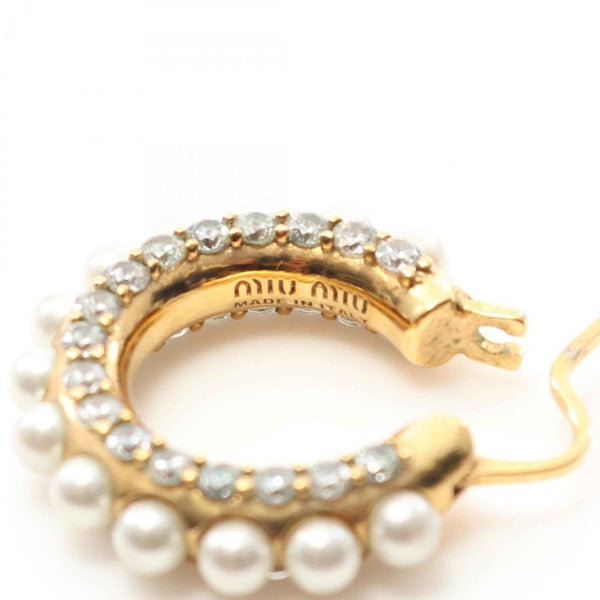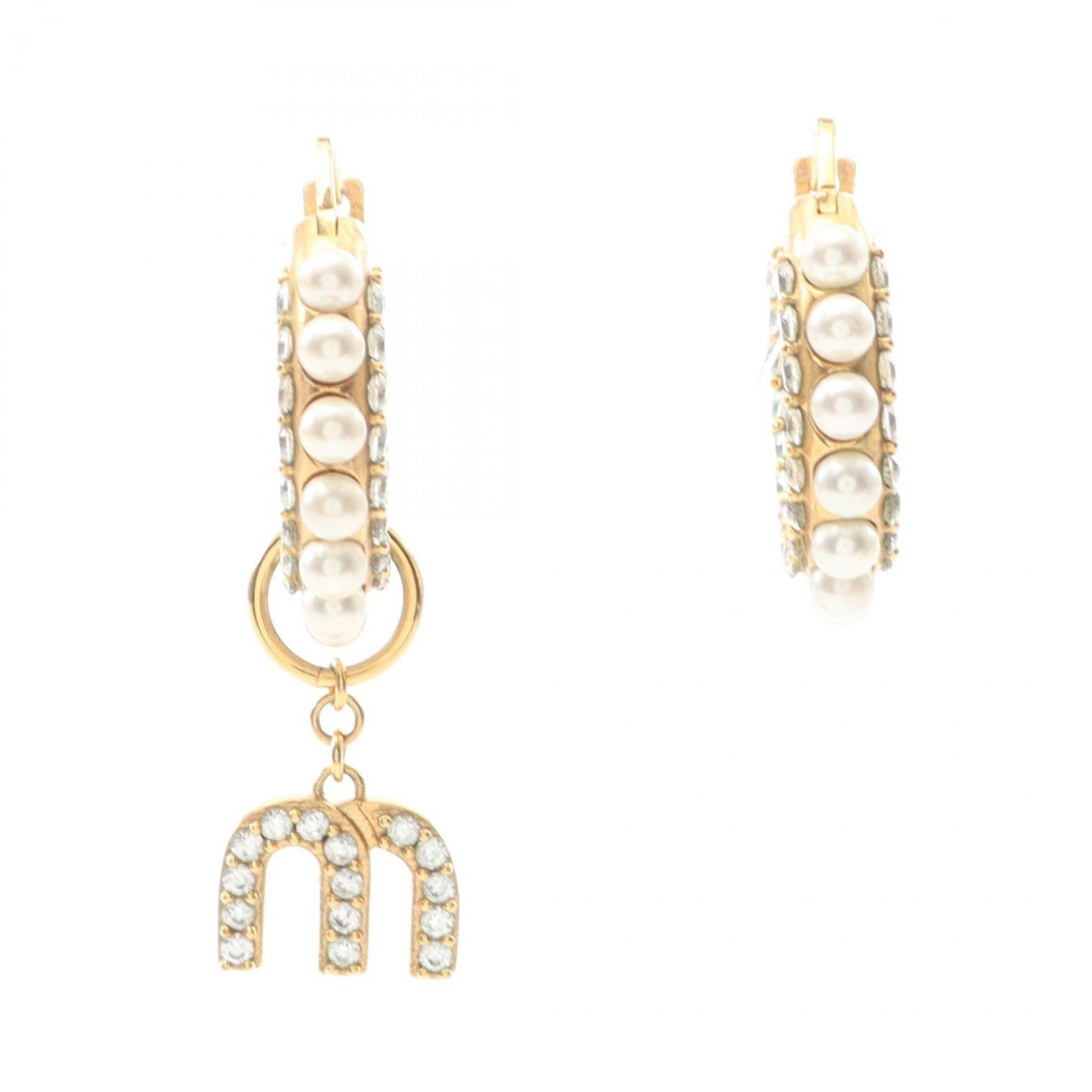 Miu Miu Miu earrings with gold-plated faux pearls and rhinestones. Available in gold, white, clear.