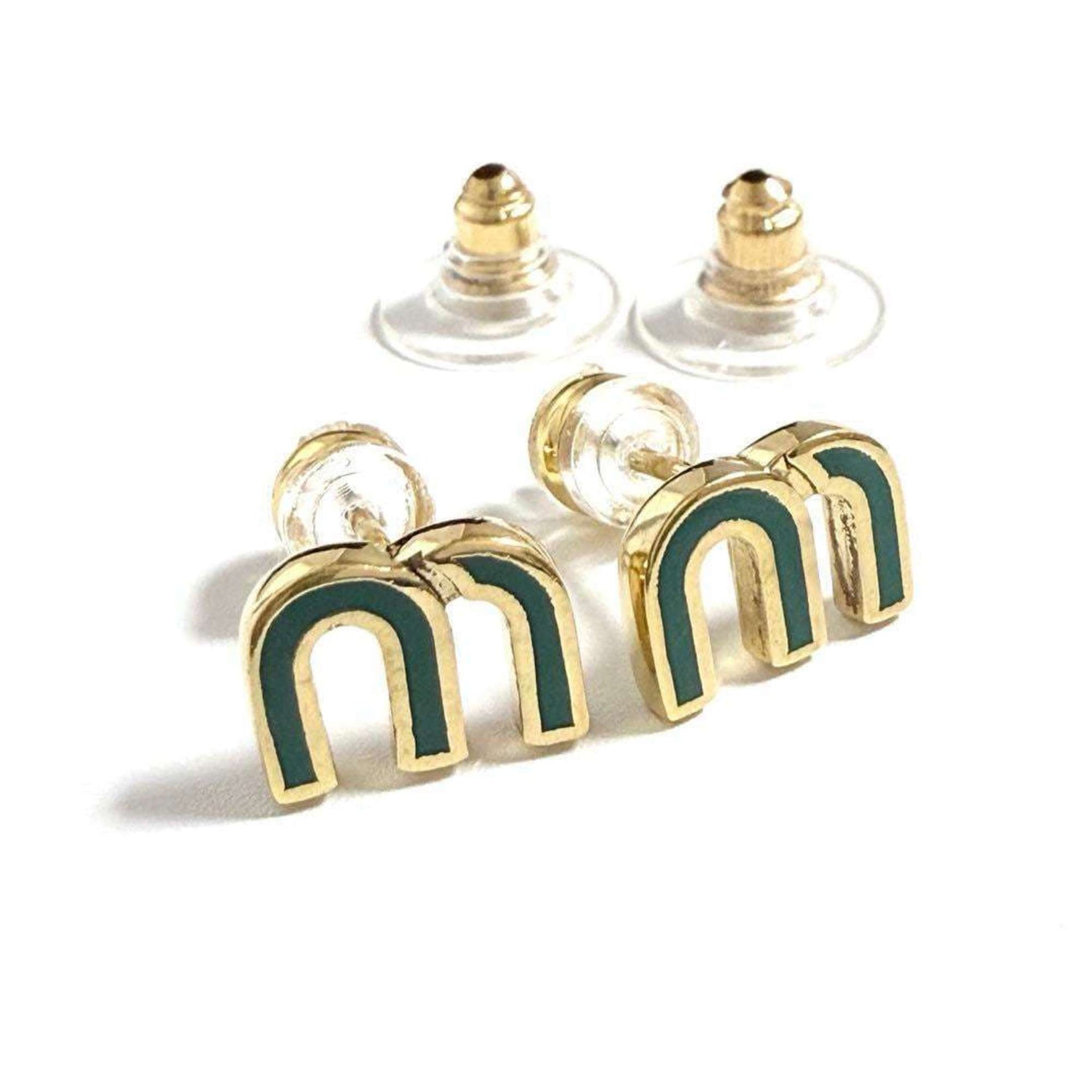 Miu Miu Miu Women\'s Enamel Metal Earrings in Green with Aftermarket Backings