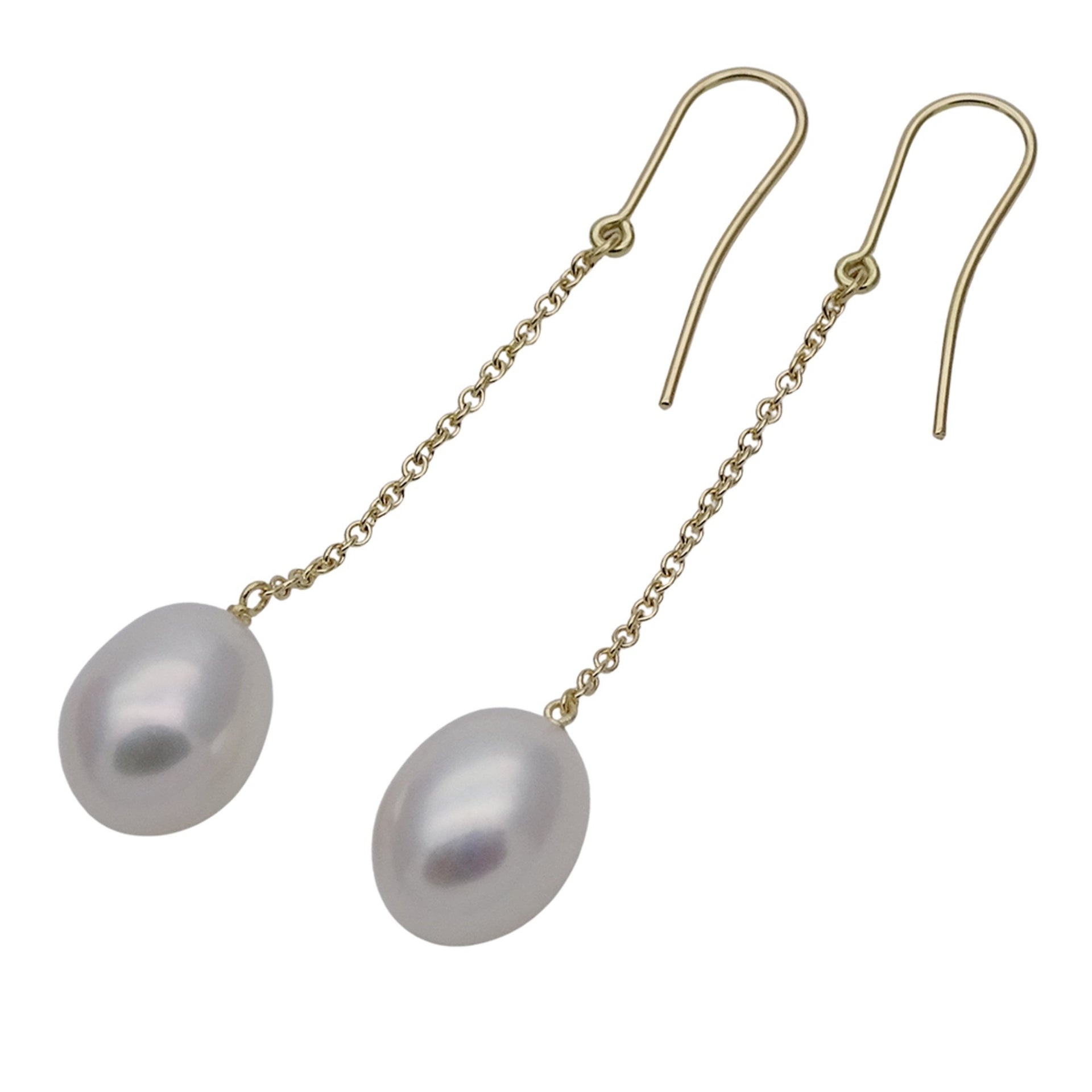 Tiffany & Co. Elsa Peretti Pearl by the Yard Earrings for Women, 750YG Yellow Gold, Polished, with Chain, Binaural Jewelry.