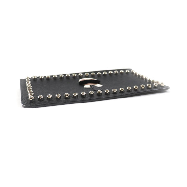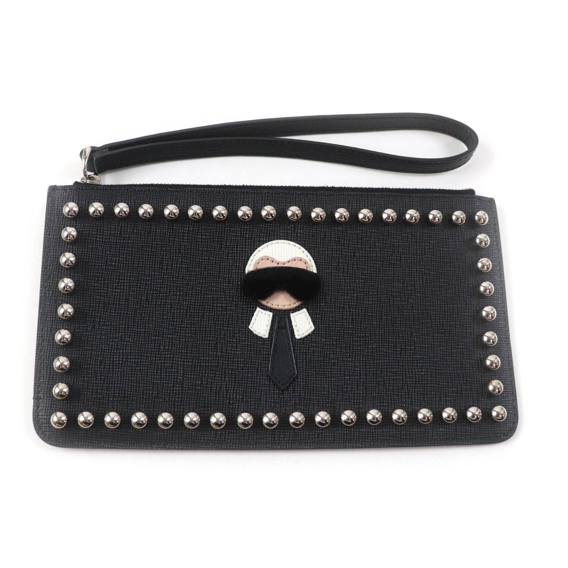 FENDI 8M0341 Karlito Karl Lagerfeld motif studded leather pouch in black, made Italy, women\'s [pre-owned]