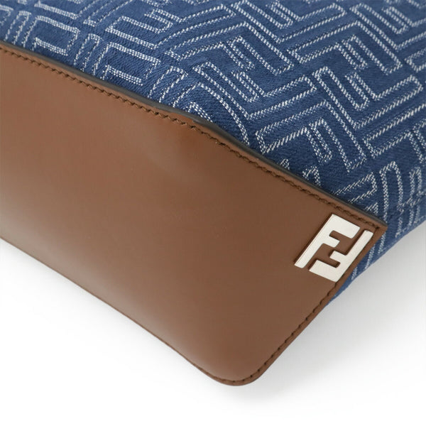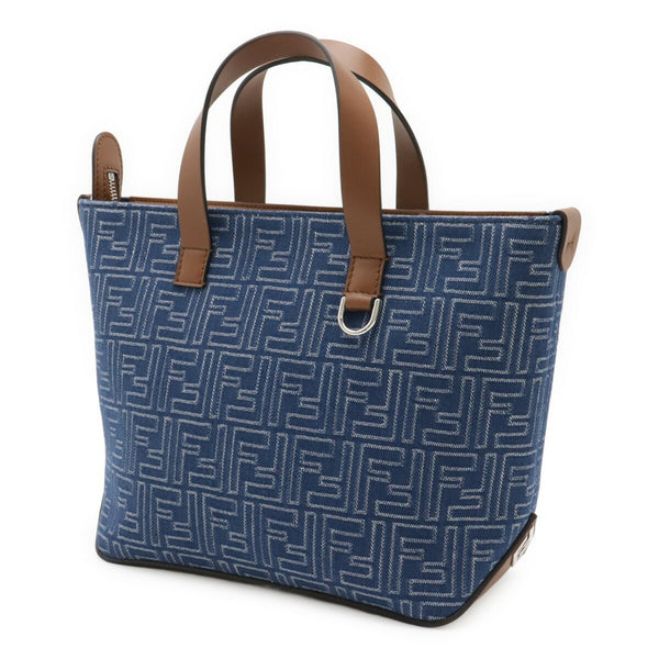 FENDI FF Bag Small Handbag Jacquard Leather Blue Brown 7VA658