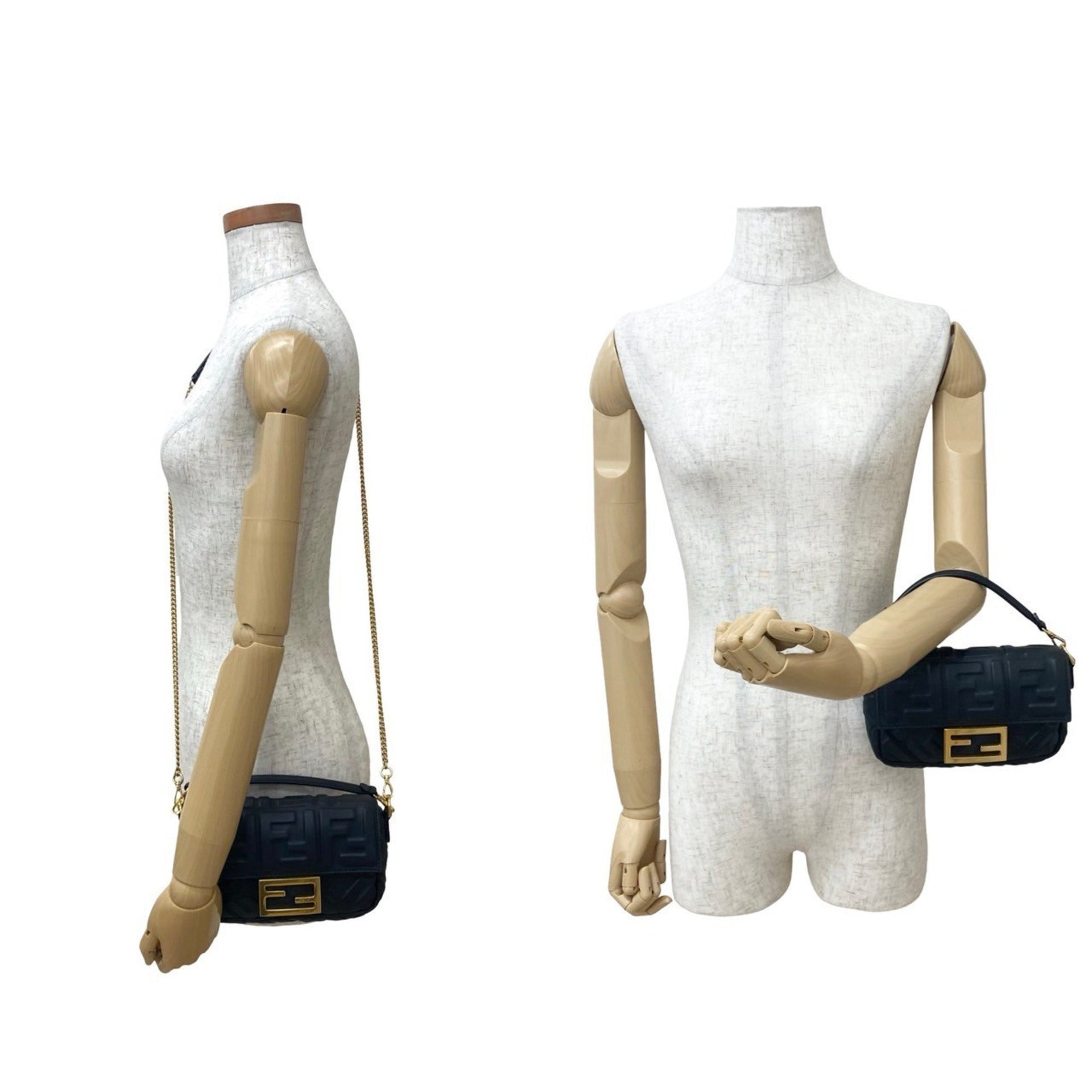 FENDI Mamma Bucket FF Logo Hardware Leather 2-Way Handbag Chain Shoulder Bag Black 36633