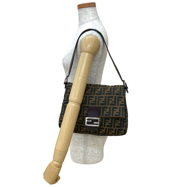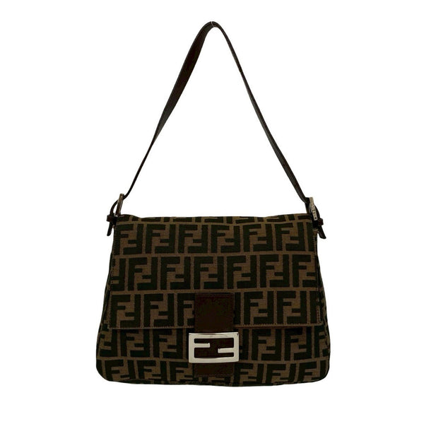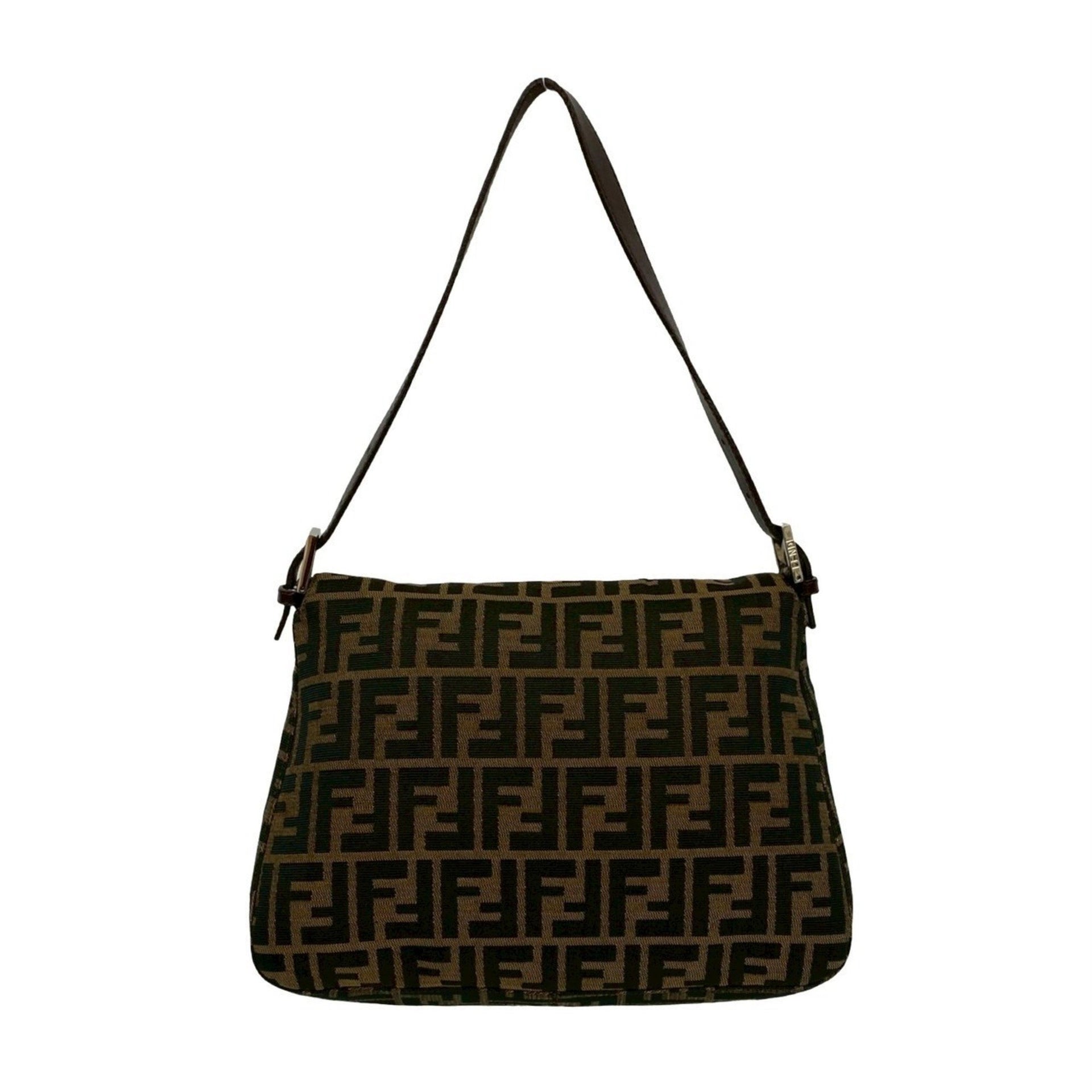 FENDI Mamma Bucket FF Logo Print Leather Canvas Semi-Shoulder Bag/Handbag Brown 30404