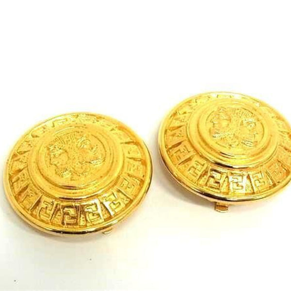 FENDI round clip-on earrings in gold metal for women, featuring the Roman god Janus.