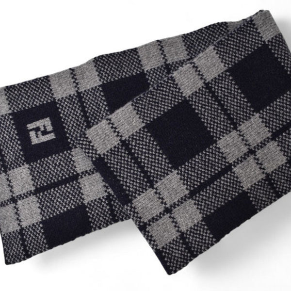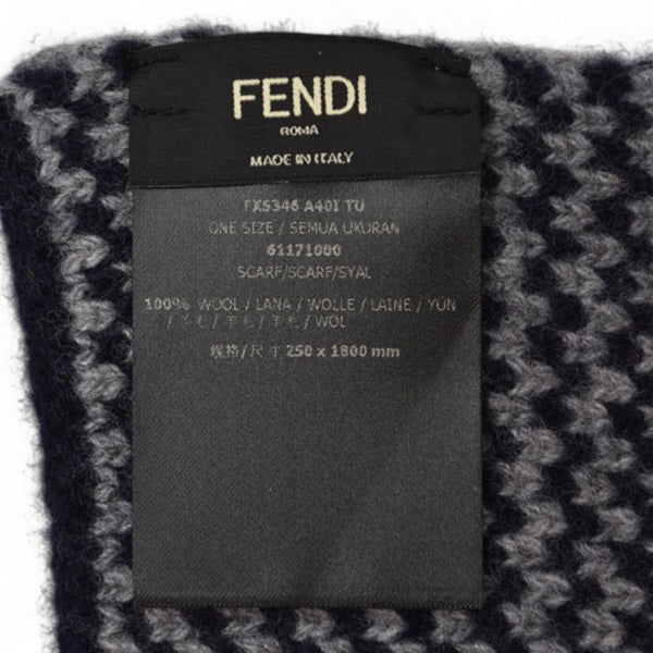 Fendi scarf, 100% wool, navy and gray.