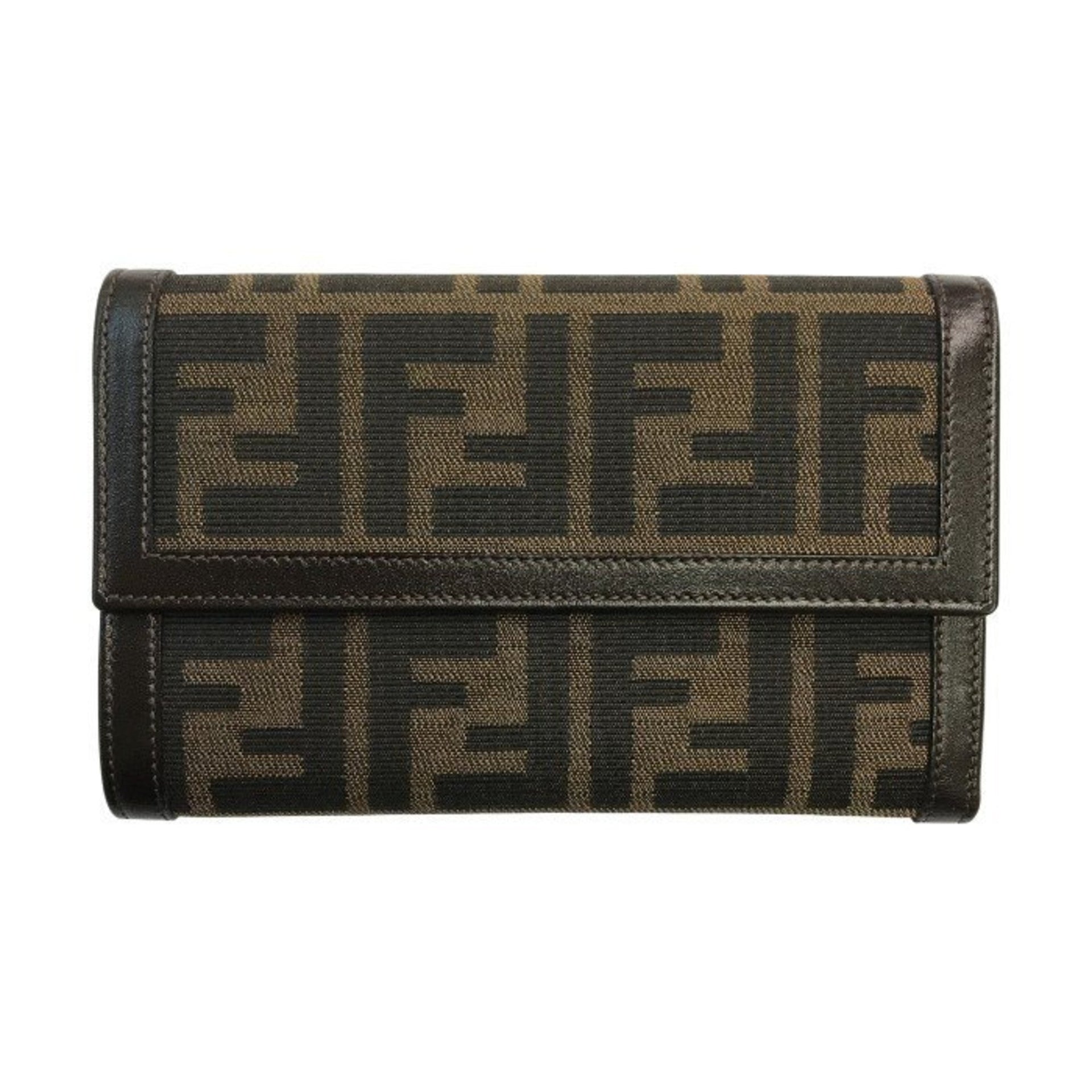 FENDI Women\'s Zucca Print Tri-fold Wallet, Brown, 30858