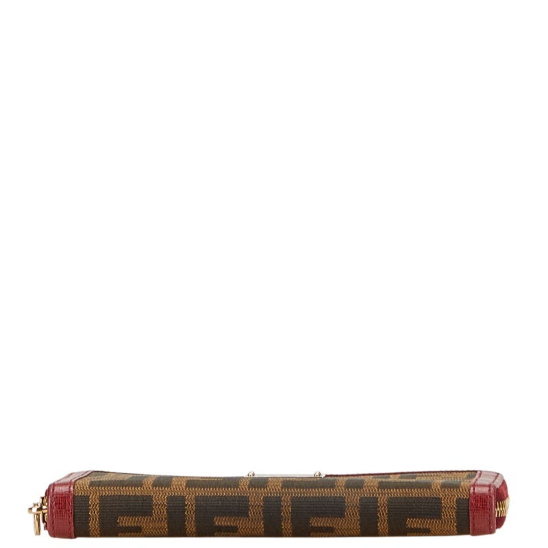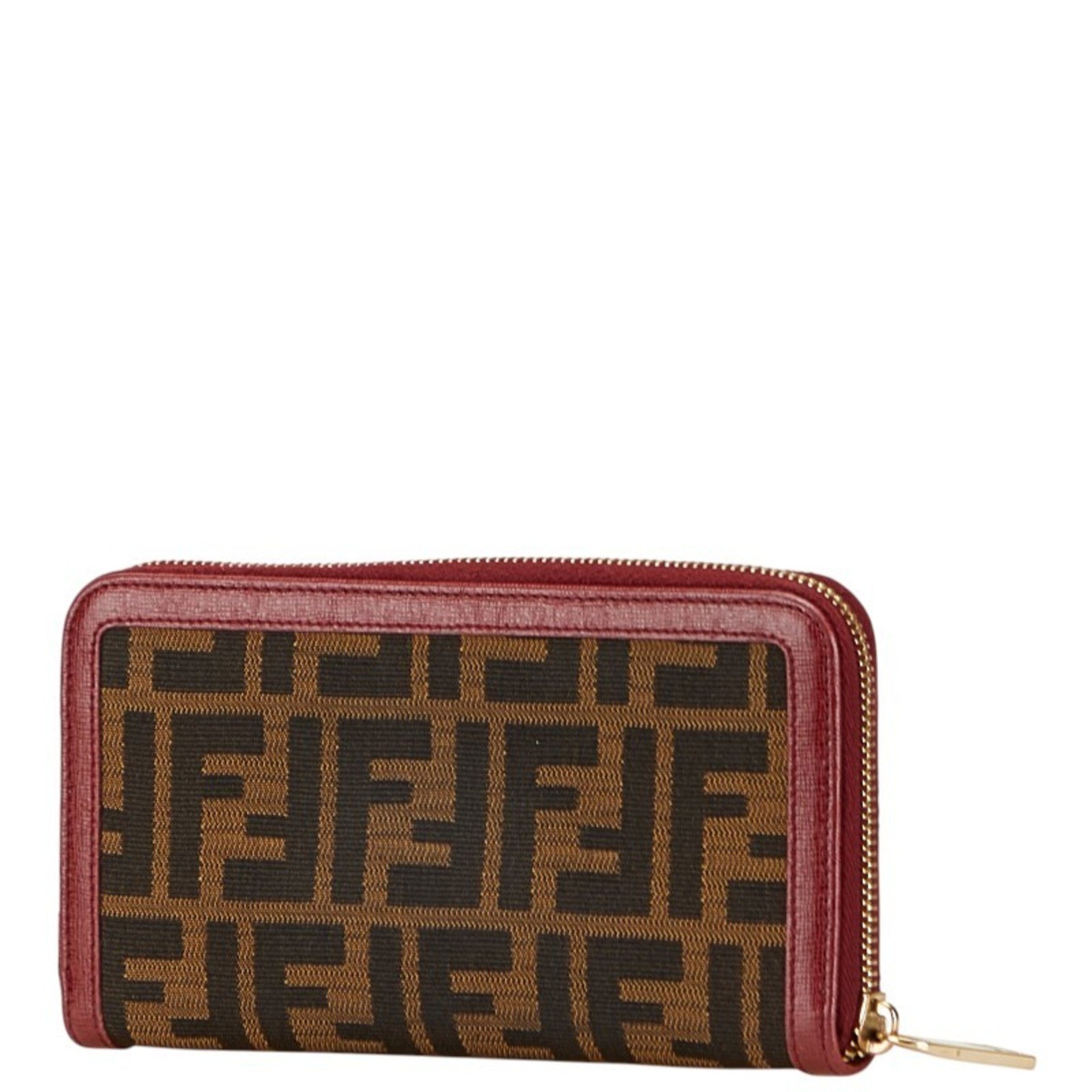 Fendi Zucca Long Wallet with Round Zipper 8M0024 in Brown and Wine Red Canvas Leather for Women