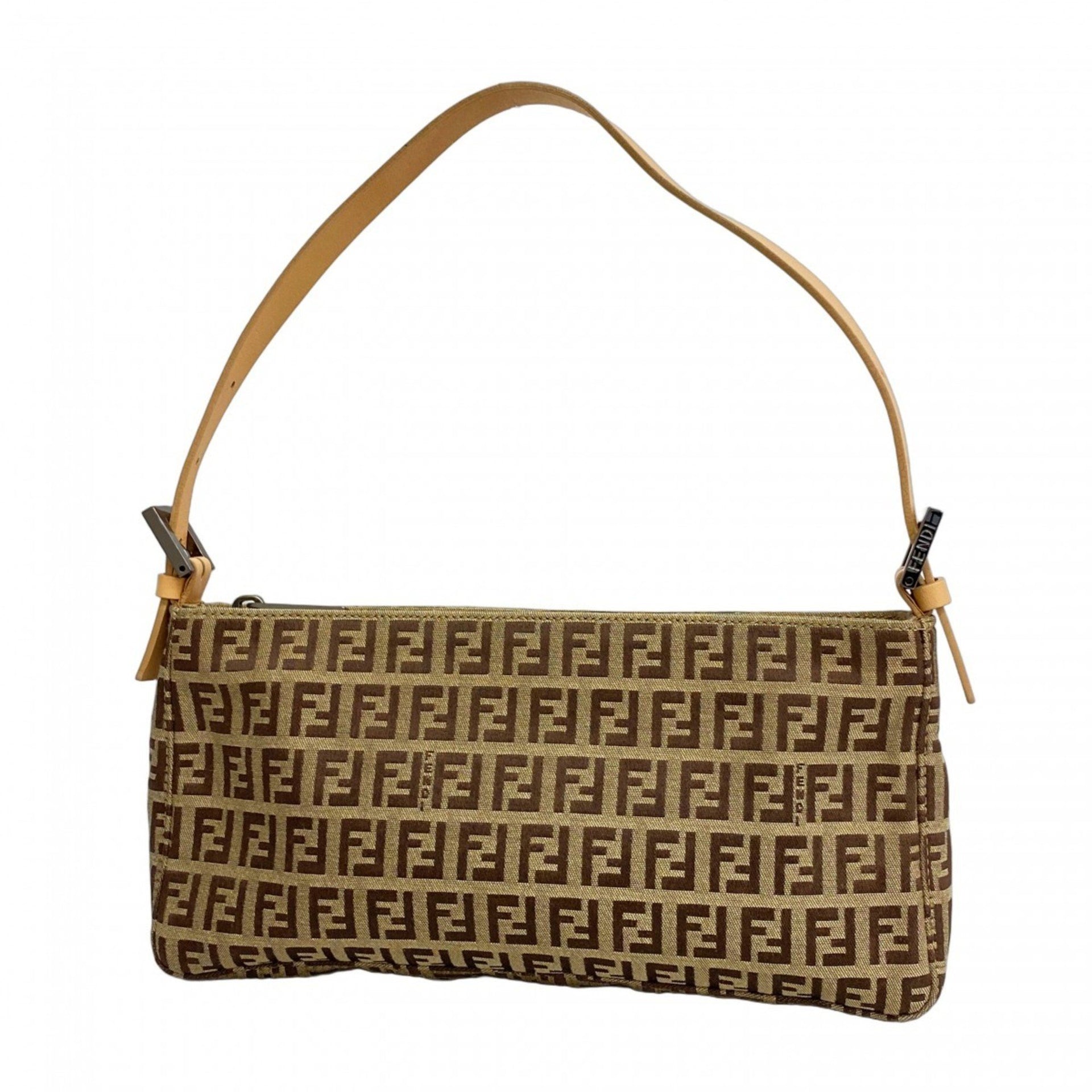 Fendi Zucchino handbag in nylon canvas, beige and brown, for women