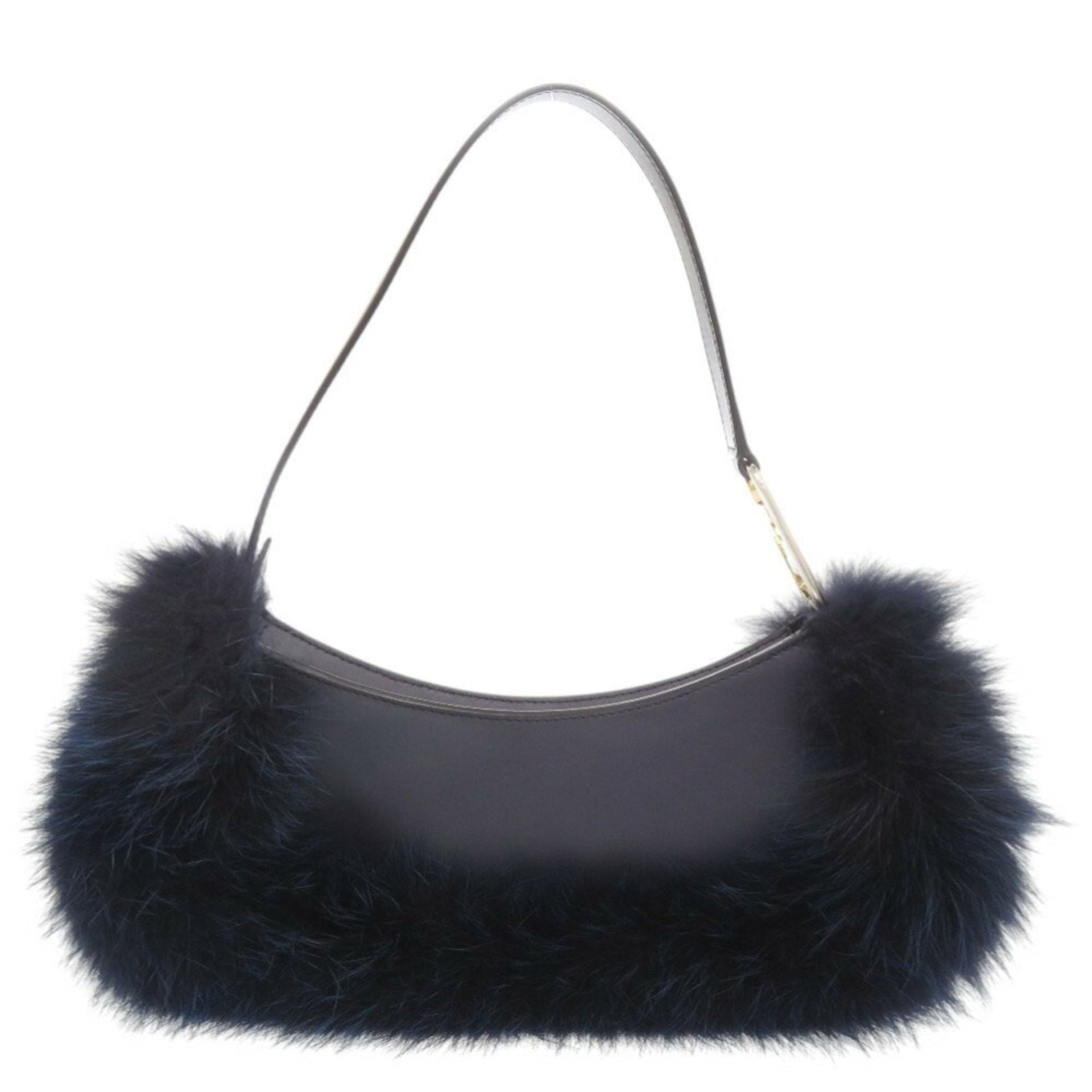 Like new Fendi Orlock Swing 8BS068 Leather and Fox Fur Navy Shoulder Bag/Handbag 0269FENDI