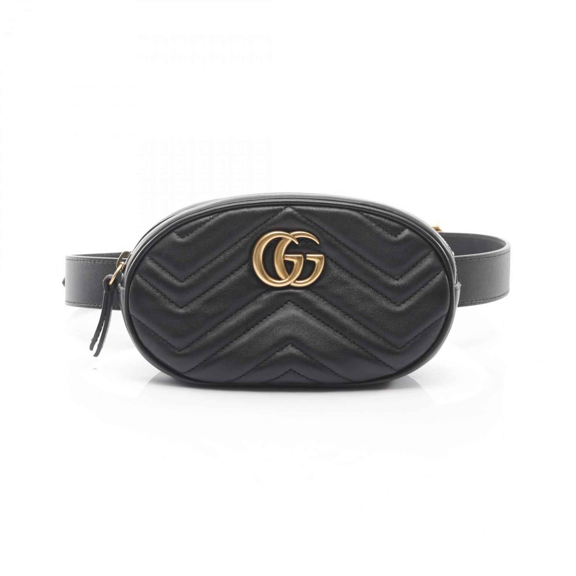 Gucci GG Marmont Waist Bag, Leather, Women\'s, Black, 476434