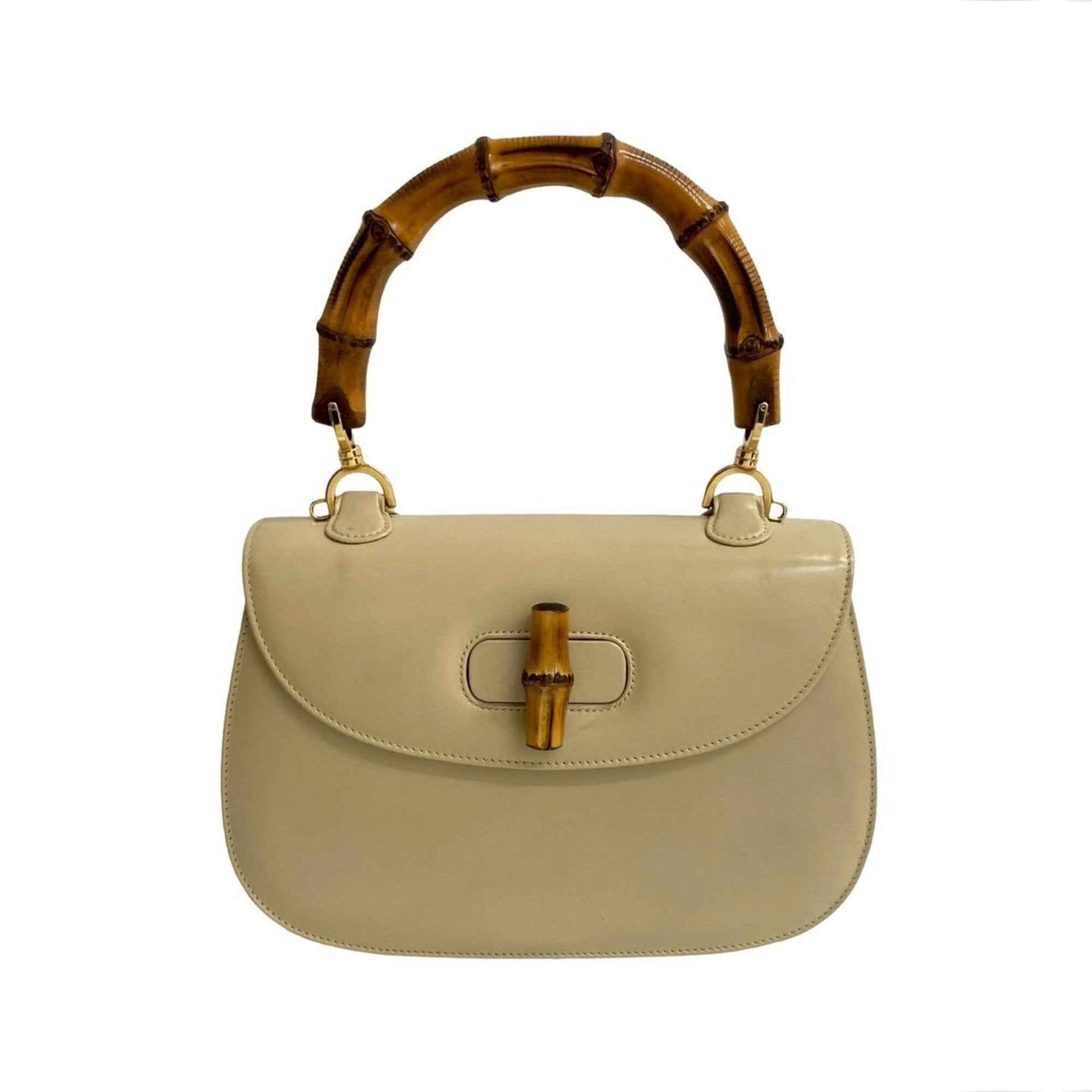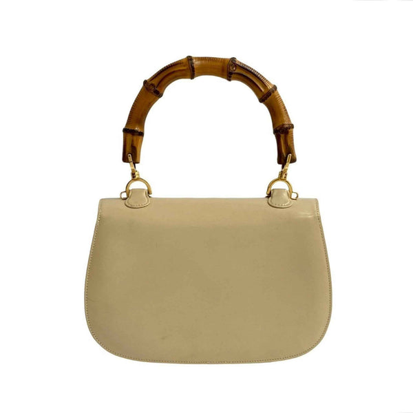 GUCCI Old Gucci Bamboo Turnlock Leather Handbag, Beige, 849-8
