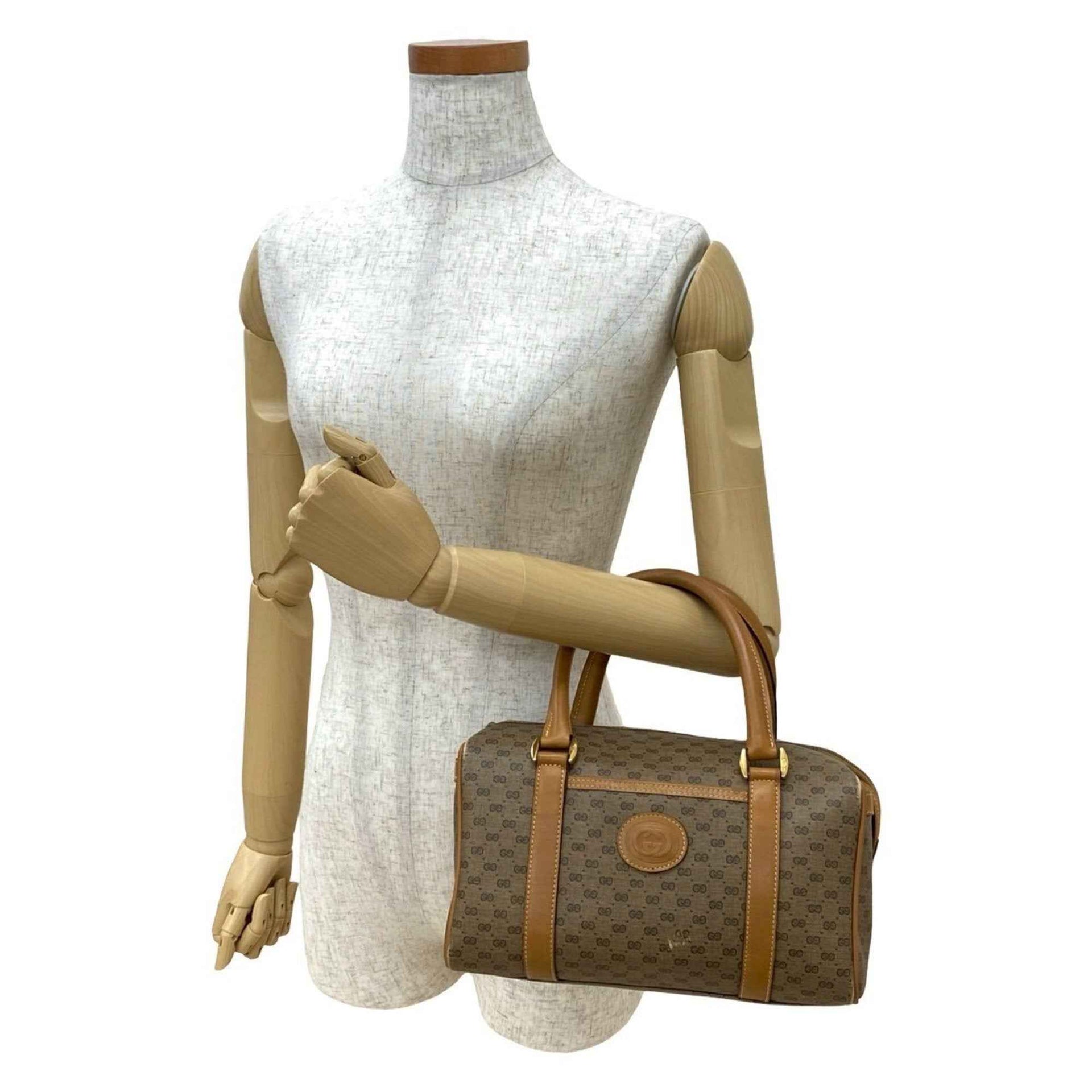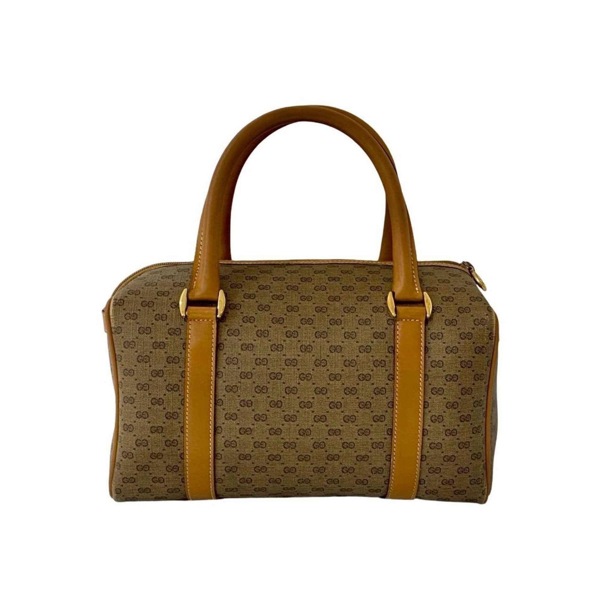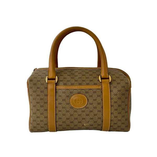 GUCCI Old Gucci Micro GG Logo Leather Handbag/Mini Boston Bag in Camel (33618)