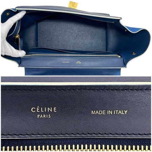 Celine 2-way bag Trapeze f-24240 Blue Navy Leather S-VP-4125/S-MM-4145 CELINE handbag flap shoulder blue navy ladies