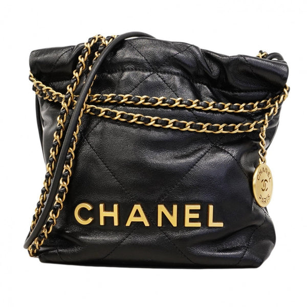 Chanel 22 calfskin handbag with chain shoulder strap, black, 2-way bag for women