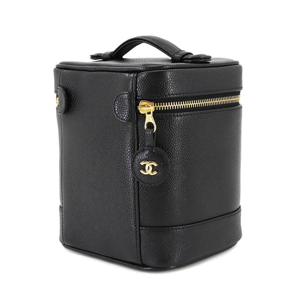 CHANEL Vanity Handbag, Caviar Leather, Black, A01998, Coco Mark, Gold Hardware
